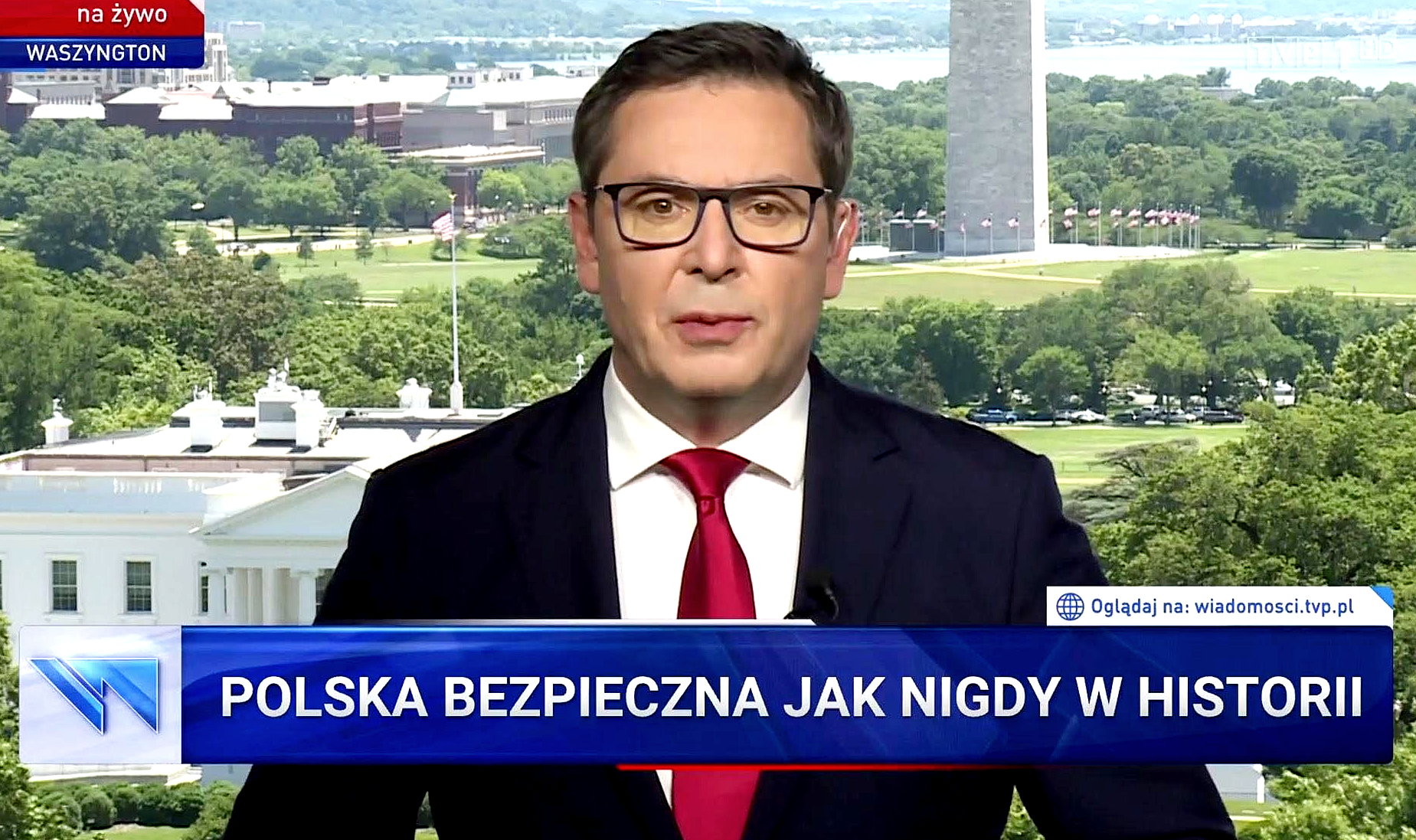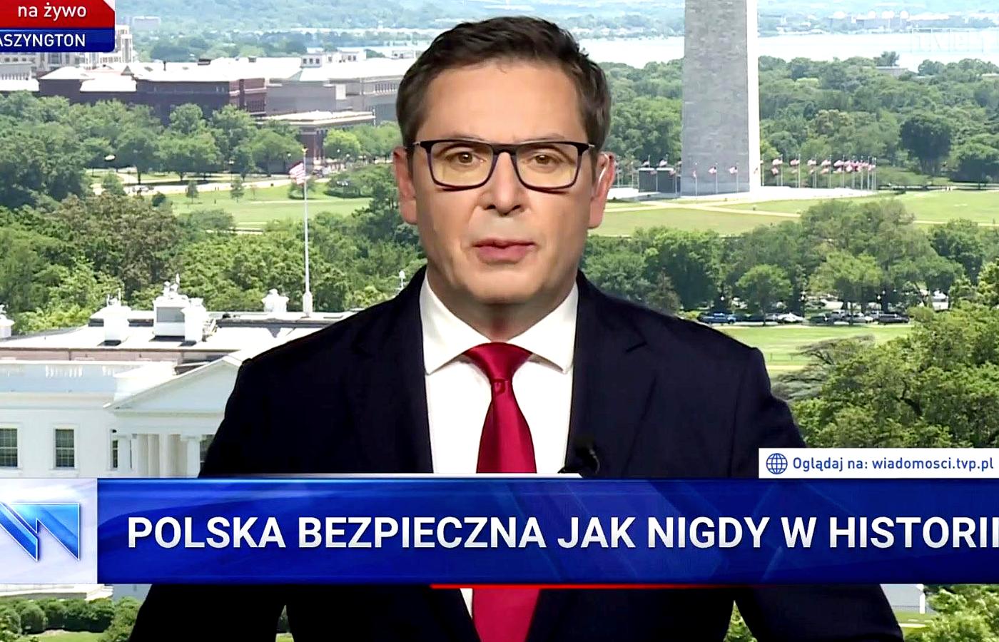 Główny materiał dotyczył zbliżającej się wizyty Dudy w Waszyngtonie. Relację prowadził niezawodny red. Adamczyk. Głosem pełnym entuzjazmu i pasji komentatorzy zapewniali o wielkiej wadze tej wizyty i wielkich zasługach Dudy dla relacji z USA, które gwarantują nam bezpieczeństwo militarne i energetyczne, jak również ogromne korzyści materialne w postaci gigantycznych inwestycji amerykańskich w Polsce. Wielokrotnie powtarzano, że inwestycje te są wynikiem przekonania USA, iż Polska jest krajem stabilnym. Jeśli nie nastąpi polityczne trzęsienie ziemi, możemy się spodziewać dalszego napływu amerykańskiego kapitału. Wszystko to jest półprawdą, a nawet ćwierćprawdą. Owszem, klimat polityczny w Polsce odpowiada wielu inwestorom i politykom w USA, lecz tylko ze sfer republikańskich. A trzęsienie ziemi może być nie tylko u nas, lecz również w Ameryce, gdzie perspektywy zachowania władzy przez Trumpa są równie niepewne jak perspektywy zwycięstwa Dudy. O tych zależnościach i ich wpływie na przyszłe stosunki polsko-amerykańskie nie powiedziano, rzecz jasna, ani słowa.