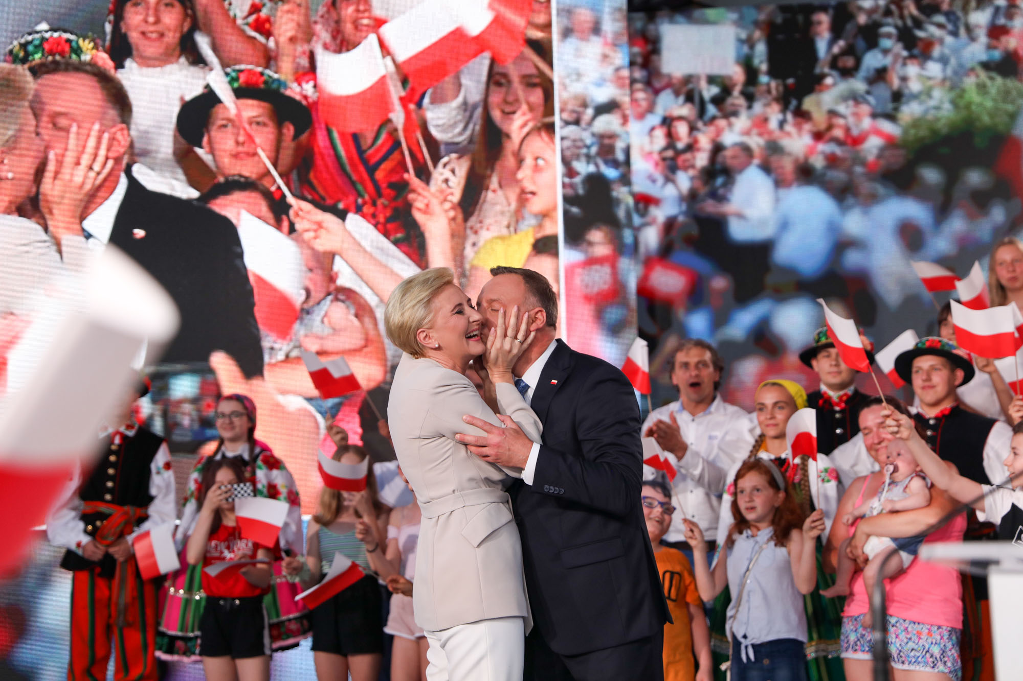Pięć lat temu PiS po pierwszej turze wyborów prezydenckich zorganizował wieczór wyborczy w siedzibie partii w Warszawie. Tym razem odbył się w Łowiczu. Zebrani zaraz po ogłoszeniu wyników odśpiewali kandydatowi „Sto lat”. Za prezydentem stanęła partyjna młodzież w strojach łowickich. W czasie dość długiego przemówienia Dudy znudzone dzieci, które stały za jego plecami, bawiły się papierowymi flagami biało-czerwonymi.