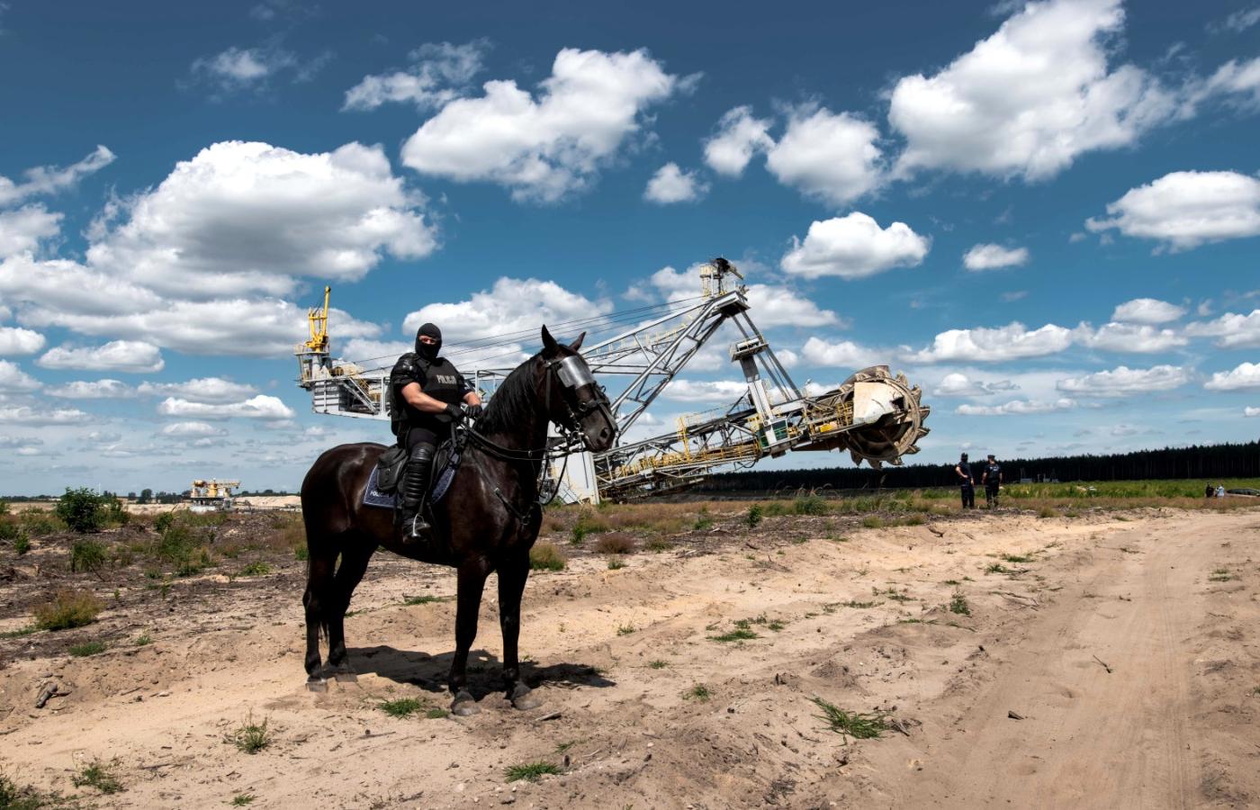 Kolumnę wyprzedzają wozy z policjantami. Część grup z Poznania weszła na teren kopalni, wspierana przez niemieckich ekologów – są nieopodal miejsca, w którym Chrobry spotkał się z Ottonem III.