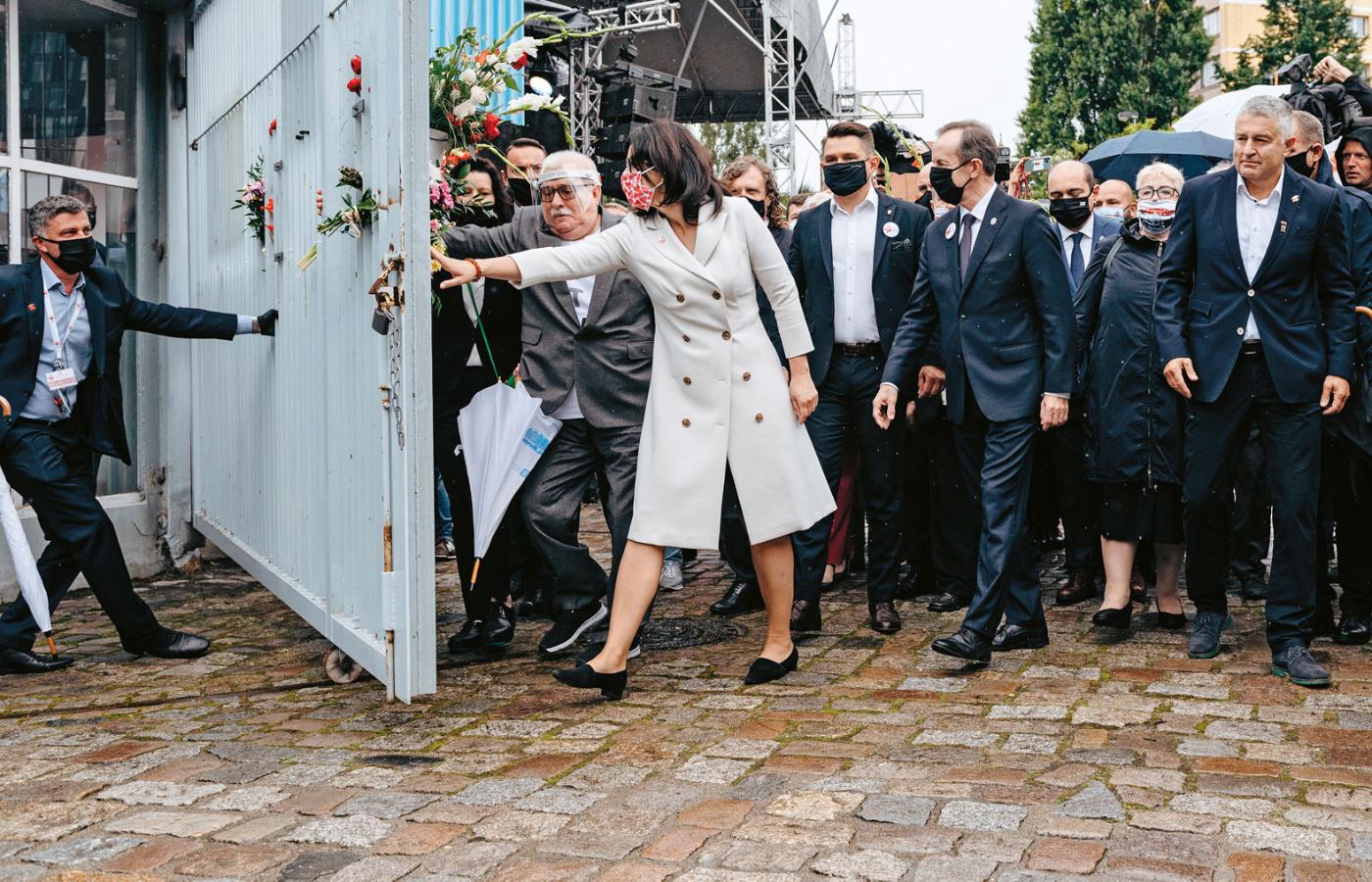 Lecz Sierpień od lat już nie łączy. Na scenie ustawionej tuż obok historycznej bramy 40 lat później stanęli bohaterowie tych dni: Lech Wałęsa, Henryka Krzywonos, Bogdan Lis i Władysław Frasyniuk, a obok nich marszałek Senatu Tomasz Grodzki i prezydent Gdańska Aleksandra Dulkiewicz. W strugach deszczu, mimo covidowych obostrzeń, oklaskiwało ich kilkuset gdańszczan oraz gości z flagami polskimi, europejskimi, białoruskimi i tęczowymi („Niech wam tęcza nie przeszkadza” – apelował do Polaków Frasyniuk).
