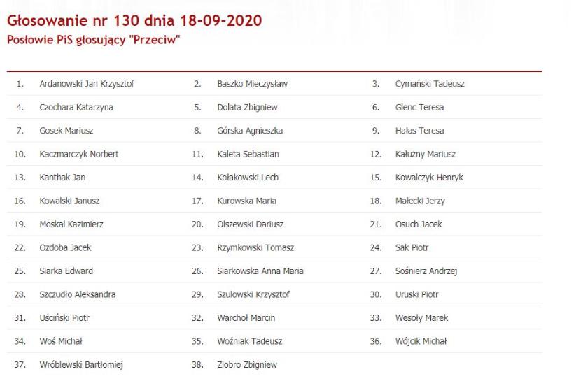 Za ustawą, nazywaną także „futerkową”, opowiedziało się 356 posłów, a wśród głosujących przeciw (75) i wstrzymujących się (18) byli posłowie Solidarnej Polski i Porozumienia. „Dobrymi ludźmi” – jak mówił Kaczyński – którzy powinni poprzeć tę ustawę, nie okazali się też niektórzy posłowie z jego własnych szeregów.
