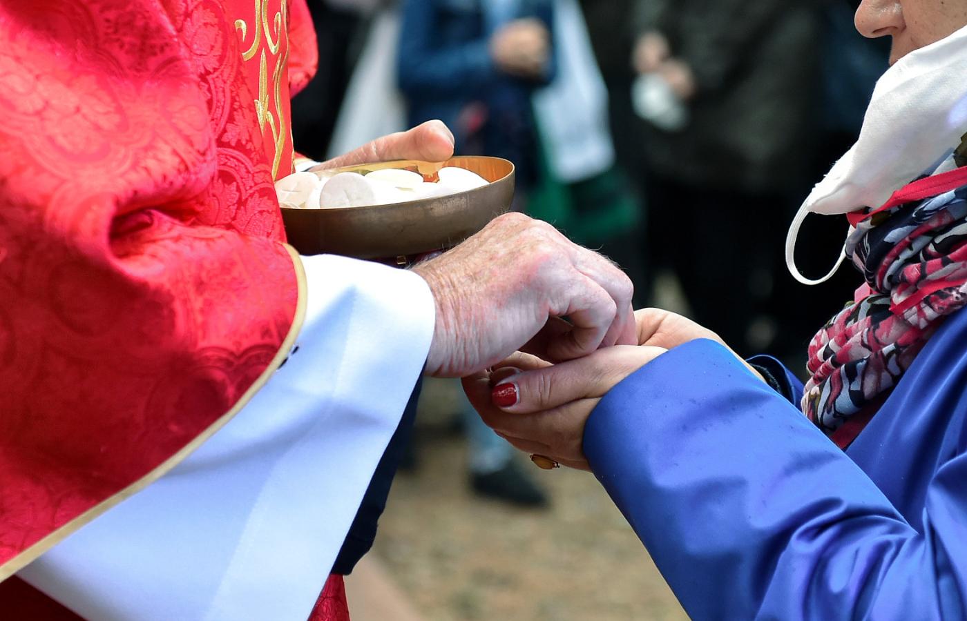 Komunikat porusza też kontrowersyjną wśród katolików kwestię sposobu przyjmowania komunii na dłonie zamiast – jak to jest w Polsce powszechne – do ust. Bp Marek Szkudło stwierdza, że komunię można przyjmować na rękę i przywołuje wytyczną Konferencji Episkopatu Polski odrzucającą zarzuty ultrakatolików, iż przyjmowanie jej na rękę jest brakiem szacunku dla tego sakramentu, a więc grzechem.