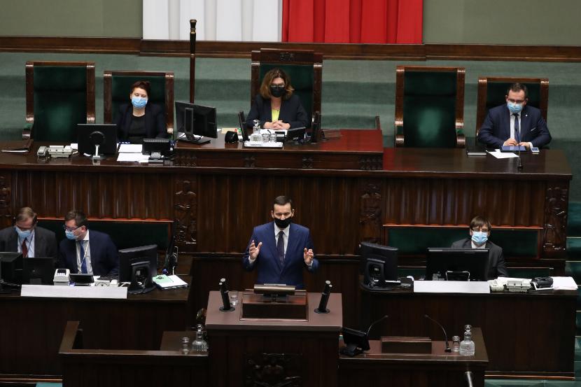 Wcześniej premier Mateusz Morawiecki przedstawił informację o przygotowaniu państwa do walki z nasilającą się epidemią. Jak mówił, obecnie mamy do czynienia z drugą falą koronawirusa, a być może grozi nam trzecia i kolejne. Szef rządu przyznał, że jego gabinet nie chce zamykać gospodarki: – Nasza strategia i zasada to przede wszystkim tak budować życie społeczne i gospodarcze, żeby móc uczyć się, pracować, żyć, nie zamykać gospodarki i jednocześnie przecinać ten pas transmisyjny covid-19 – mówił. Według premiera dzięki tarczom kryzysowym w Polsce udało się utrzymać 5 mln miejsc pracy i jak zapowiedział, ponieważ polska gospodarka idzie drogą środka, Polska będzie w pierwszej piątce gospodarek Unii Europejskiej. – Na to wszystko zareagowaliśmy błyskawicznie – tarczą finansową, tarczą antykryzysową, bo poduszka płynnościowa dla przedsiębiorców, która cały czas jest, mierzona obiektywnymi wskaźnikami i według finansów, ekonomistów wystarczy jeszcze na kilka miesięcy, mówię w skali całej gospodarki – przekonywał Morawiecki. Zdaniem premiera Polska ma szansę przejść „najbardziej suchą stopą” przez drugą falę.