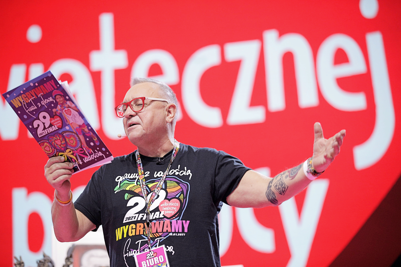 Owsiak się nie poddał, przygotował koncert i ten koncert właśnie się odbędzie. 1362 sztaby, 120 wolontariuszy na całym świecie. 29. Finał WOŚP odbywa się pod hasłem „Gramy z głową!”. Zbiera pieniądze na sprzęt dla oddziałów laryngologii, otolaryngologii i diagnostyki głowy. Tak, Jurek ma rację: gdyby to Orkiestra szczepiła przeciwko covid-19, cała Polska już byłaby zaszczepiona. Pewnie nawet dwa razy...