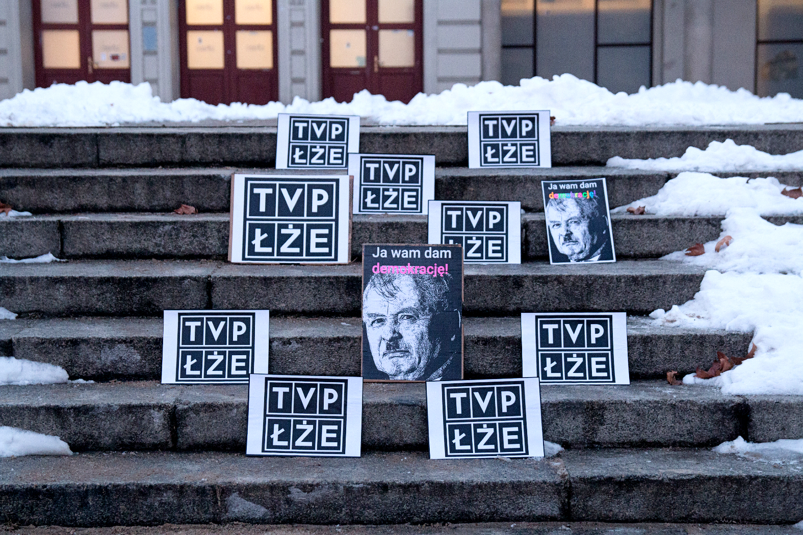 Na paskach (dez)informacyjnych można było przeczytać: „Koncerny medialne traktują Polskę jak kolonię”, „Niemieckie media dla Polaków nie chcą płacić składki na polską służbę zdrowia, kulturę i zabytki”, „Szefowie medialnych koncernów zarabiają miliony, ale zyskami nie chcą dzielić się z Polakami”.