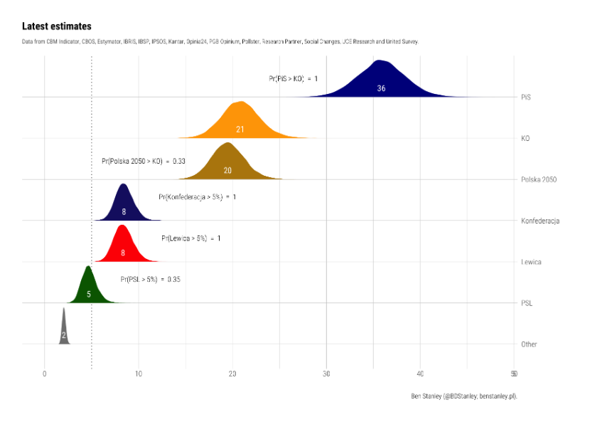 Kluczowa bitwa polityczna w Polsce toczy się obecnie z centroprawicą, a poparcie dla innych partii cechuje w dużej mierze stabilność. PiS (36 proc.