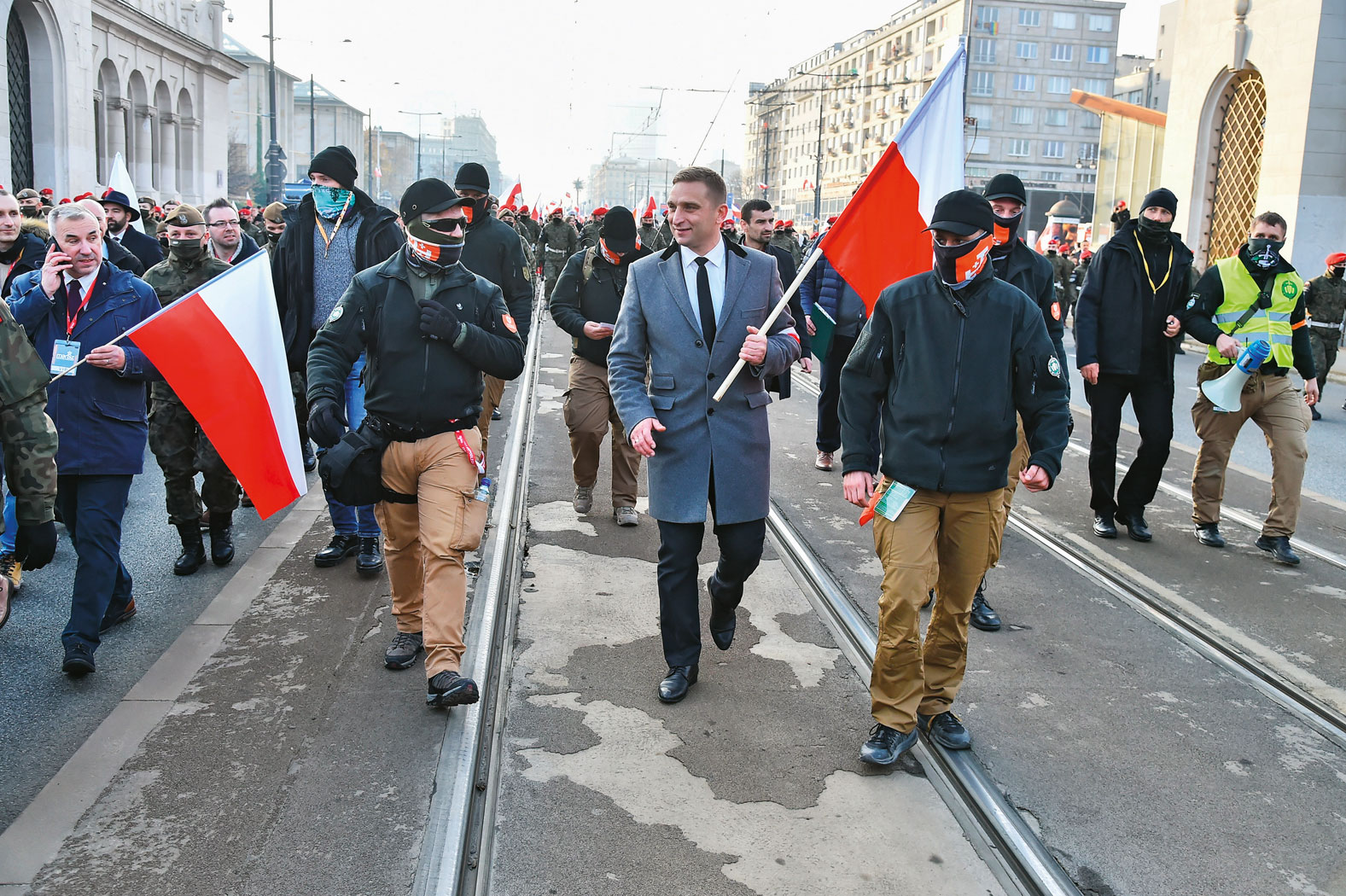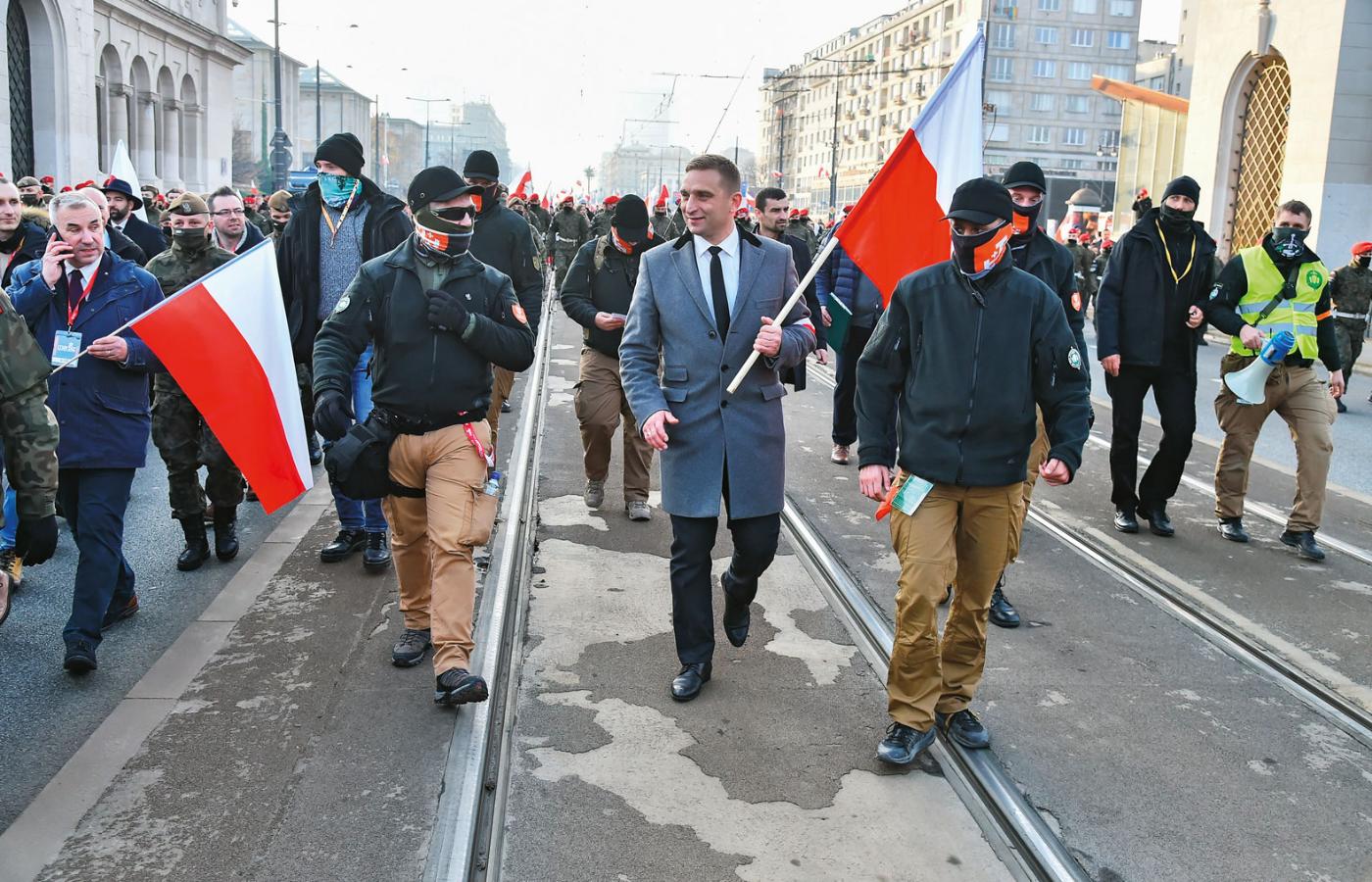 Marsz ’21 różni się od poprzednich wojskowym drylem i miłością do munduru. Od kiedy Bąkiewicz dostał od rządu na własną działalność wodzowską prawie 4 mln zł, marsz nauczył się nawet kochać policję, ponieważ wódz z policją współpracuje. Kiedy teraz jakiś niezagospodarowany ideologicznie żul krzyknie odwieczne marszowe: „Zawsze i wszędzie policja jebana będzie!”, zabija się go ciszą i spojrzeniem. Setki przysłanych Bąkiewiczowi przez rząd do pomocy przy marszu żandarmów wojskowych patrioci ’21 proszą: „Platformę spałujcie, kurwa!”. Podległa Bąkiewiczowi Straż Narodowa harcuje w tłumach, wyręczając ukochaną policję: sprowadzą zawianego na chodnik, uspokoją krewkiego, zrobią przejazd dla dwóch rządowych limuzyn z czarnymi szybami, które żółwim tempem towarzyszą idącym. Zachowają konspiracyjne milczenie o pasażerach.