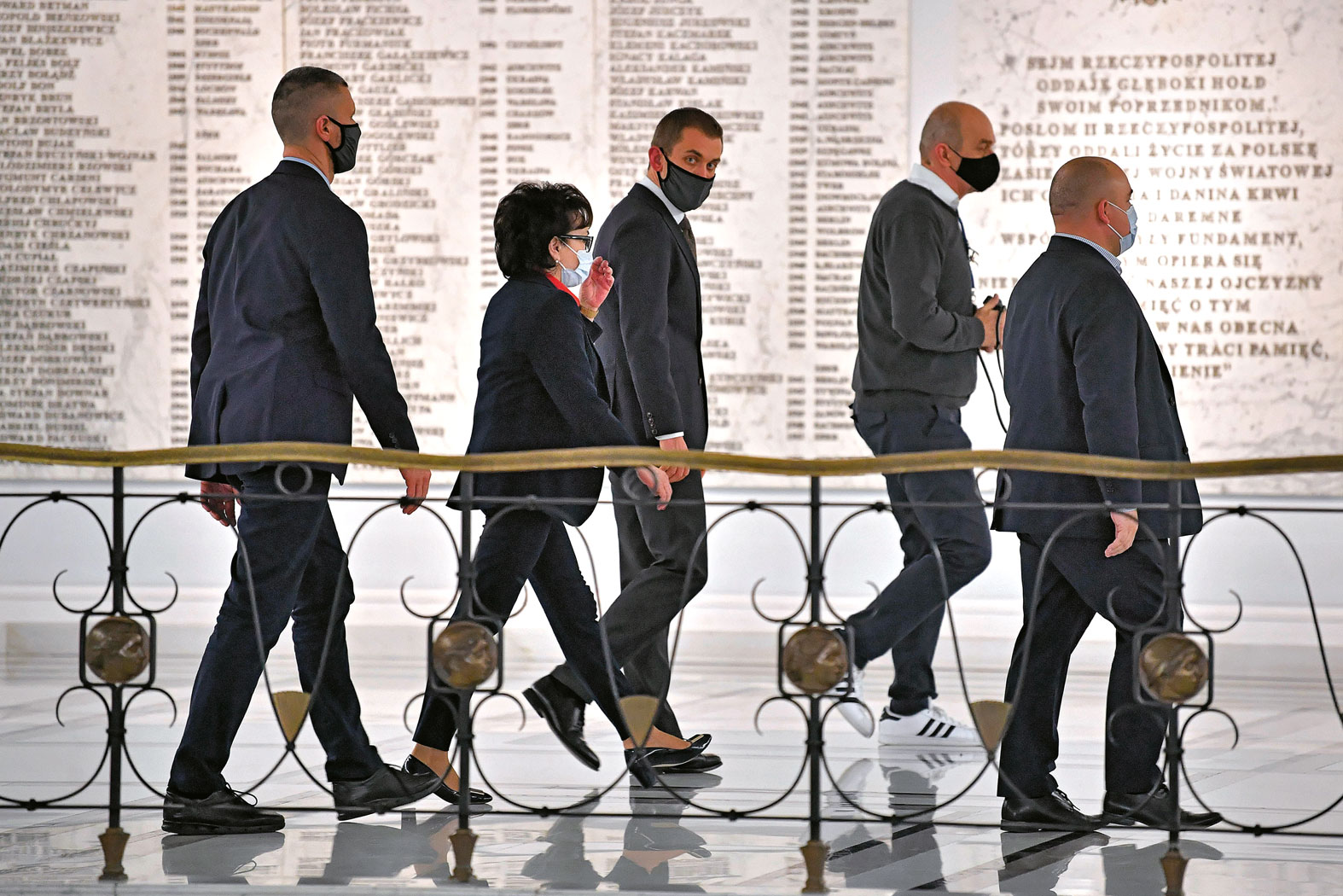 „Jako rząd nie mamy wpływu na pandemię, bo nie my ją wywołaliśmy” – na taki przypływ szczerości zdobyła się marszałek Elżbieta Witek po zeszłotygodniowym spotkaniu w sprawie szukania „wspólnych punktów” między opozycją a rządem. Próba wciągnięcia opozycji w forsowanie niepopularnych pomysłów nie przyniosła przełomu. Minimum, co do którego ustalono konsens, to: ustawa o funduszu kompensacyjnym (którą rząd zapowiedział już niemal rok temu), darmowe (ale nie obowiązkowe) testy dla części zawodów (m.in. medyków i nauczycieli) i bonusy dla niemedycznego personelu oddziałów covidowych. A jakie będą dalsze losy ustawy o weryfikacji zaszczepień (o której pisaliśmy w zeszłym tygodniu)? Rząd nie rozmawiał z opozycją na ten temat, a sam poseł Czesław Hoc stwierdził, że nie ma informacji, by „jego” projekt miał być wycofany.