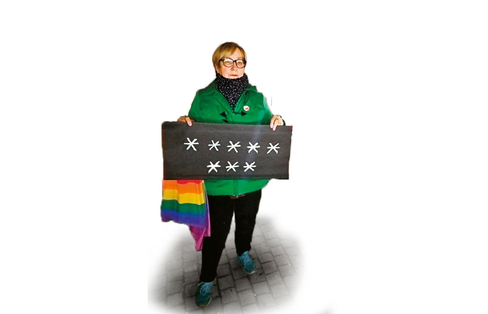 Ale to tylko jedna z w sumie dziewięciu spraw (cztery zakończone uniewinnieniem, pięć jeszcze w toku), które wniosła przeciwko emerytce z Kożuchowa policja. – Protesty przeciwko zakazowi aborcji były wszędzie, w Poznaniu, w Warszawie, w Zielonej Górze, to w końcu pomyślałam, że i w Kożuchowie trzeba zrobić. Nałożyłam więc koszulkę z konstytucją, z tyłu osiem gwiazdek, w kurtce wpięta broszka Strajku Kobiet, torebka babci Kasi w tęczę i w drogę – mówi Prokopiak.