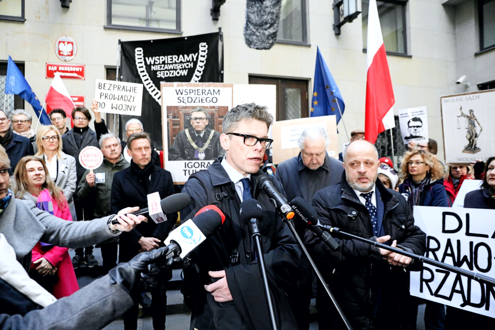 – Póki walczymy, jesteśmy zwycięzcami, niezależnie od tego, co się stanie – mówił sędzia Tuleya i wszedł do sądu. Dziennikarze z kamerami usiłowali wejść za nim, ale zatrzymała ich ochrona, powołując się na zarządzenie prezesa Schaba.