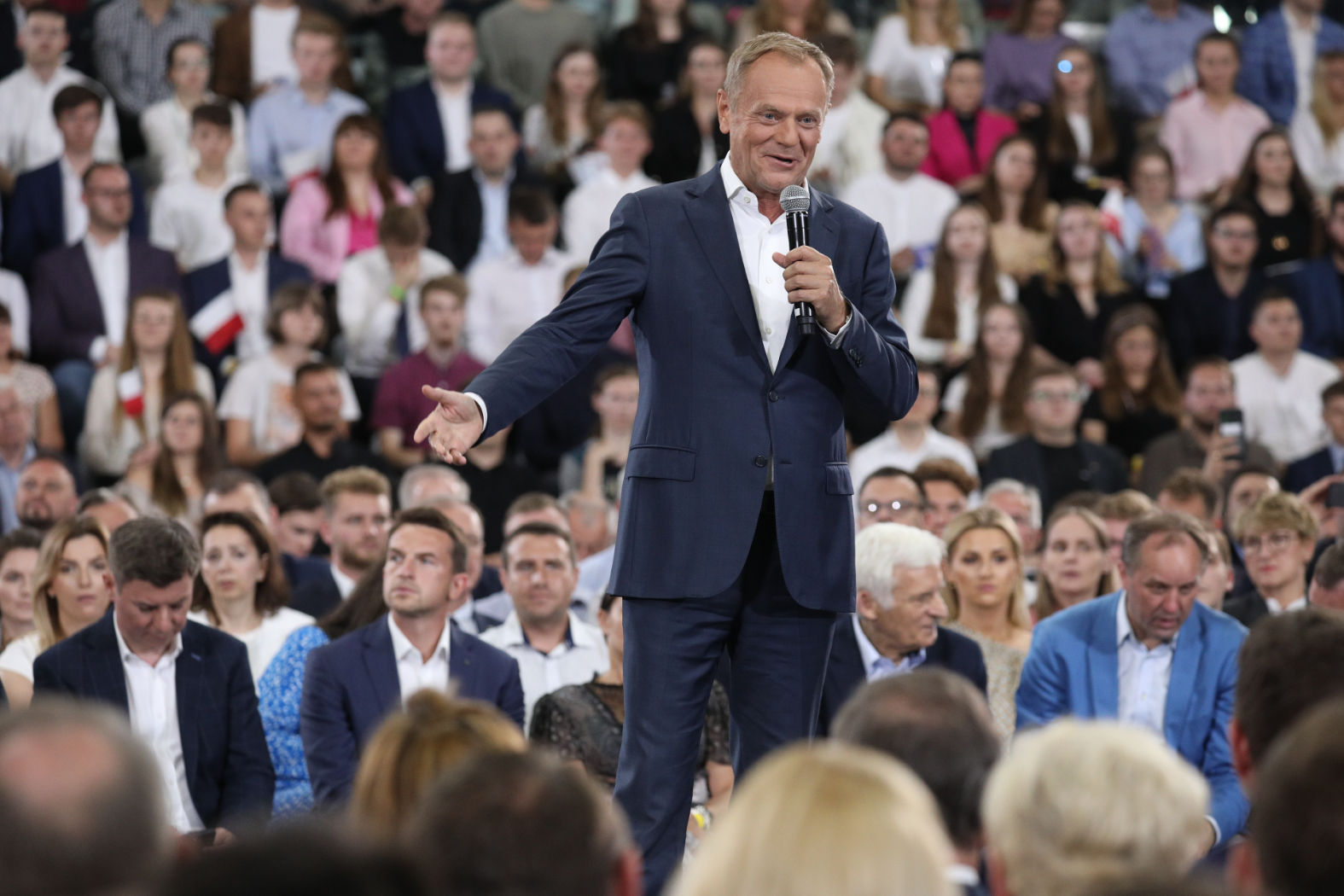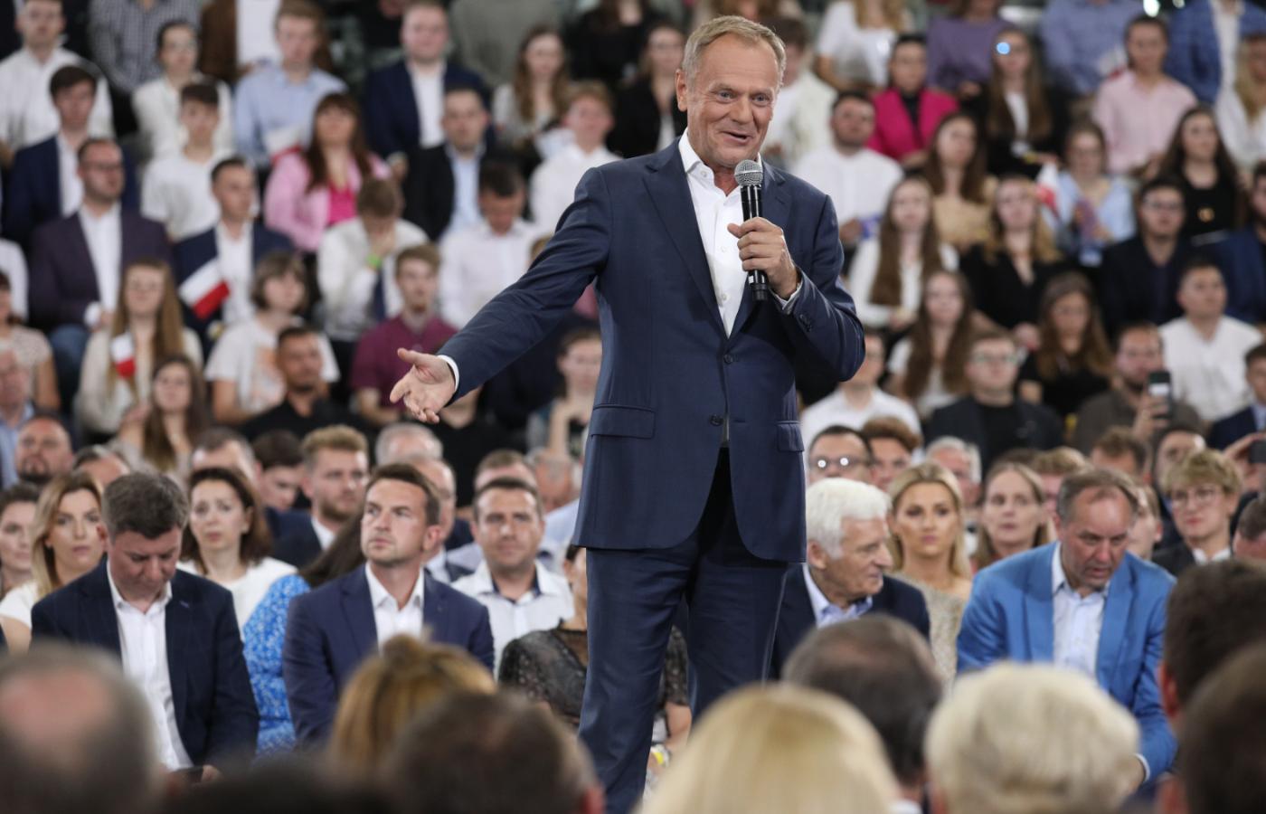 Tusk pierwszą część przemówienia zbudował na wspominaniu osób, których odwiedzał przez kilka ostatnich miesięcy w całej Polsce. „Spotykałem ludzi, którzy tak jak cała Polska są bardzo przejęci tym, co się dzieje. Bywają nawet załamani, ale też mają nadzieję, że to można zmienić.