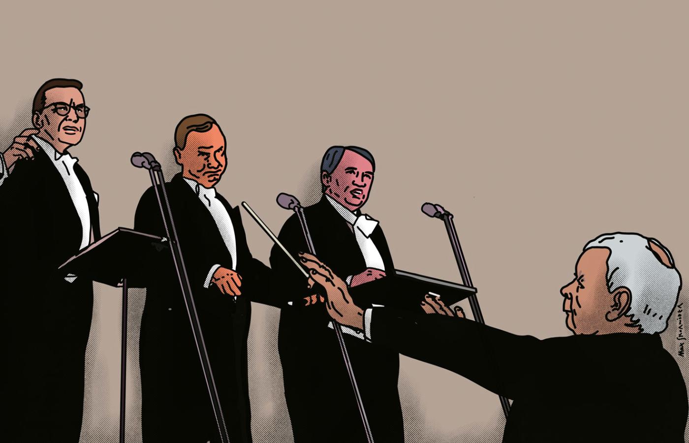 Kaczyński z jednej strony sam jest głosem w tej kakofonii Zjednoczonej Prawicy, z drugiej strony musi tym chórem zarządzać. A najbardziej nawet skłóceni ze sobą „tenorzy” wiedzą, kto jest ich najważniejszym słuchaczem i jak mu się przypodobać. Najlepszym wytrychem do serca Kaczyńskiego jest atakowanie Tuska. Im bardziej chamskie i histeryczne, tym lepiej.