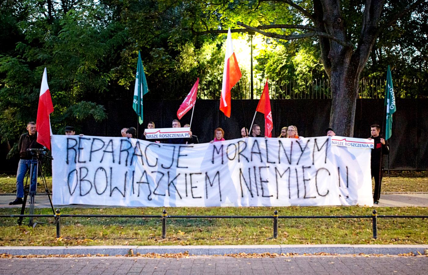 1 września, w rocznicę wybuchu II wojny światowej, stowarzyszenie Marsz Niepodległości i Roty Marszu Niepodległości, a więc dwie organizacje stanowiące szkielet prawicy narodowej, łączone osobą Roberta Bąkiewicza jako ich formalnego lub symbolicznego lidera, organizują pikietę przed warszawską ambasadą Niemiec. Cel: uzyskanie reparacji za zniszczenia wojenne i straty materialne, które poniosła Polska. Wzywając swoich zwolenników do uczestnictwa w imprezie, koordynator Rot Paweł Kryszczak pisze m.in. o 6 mln ofiar, w tym setkach tysięcy dzieci, a także o niszczeniu polskiej gospodarki i grabieniu dóbr kultury.