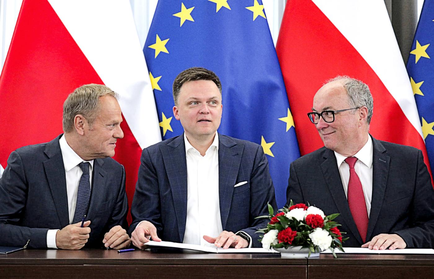 W 1989 r. stawką było otwarcie drogi ku demokracji, a teraz – jej obrona. Na fot. Donald Tusk, Szymon Hołownia i Włodzimierz Czarzasty. W 1989 r. stawką było otwarcie drogi ku demokracji, a teraz – jej obrona. Na fot. Donald Tusk, Szymon Hołownia i Włodzimierz Czarzasty. Jacek Szydłowski / Forum