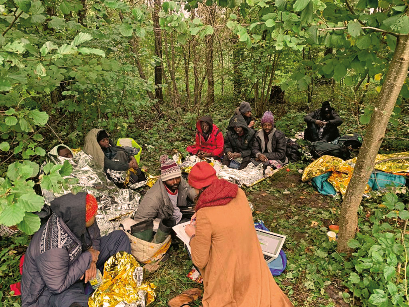 O tym, co dzieje się poza Usnarzem, w podlaskich, przygranicznych lasach, dowiadywaliśmy się powoli. Zręby Grupy Granica – zaangażowanej w pomoc uchodźcom i apelującej do polskich służb o przestrzeganie procedur i międzynarodowego prawa azylowego, nakazującego indywidualne rozpatrzenie sytuacji każdego cudzoziemca – dopiero się tworzyły. Ktoś opowiadał, że spotkał ludzi w lesie, ale zaraz pojawiła się Straż Graniczna i wszystkich zabrała w nieznanym kierunku bez żadnych wyjaśnień. Co robić w takiej sytuacji? Co mówić cudzoziemcom? Czy coś im dawać? Aktywiści naradzali się po cichu, spotkania odbywały się w wąskich gronach osób wtajemniczonych, w prywatnych domach u „lokalsów”. Dziennikarze nie o wszystkim byli informowani od razu. Potrzeba było czasu, zaufania.