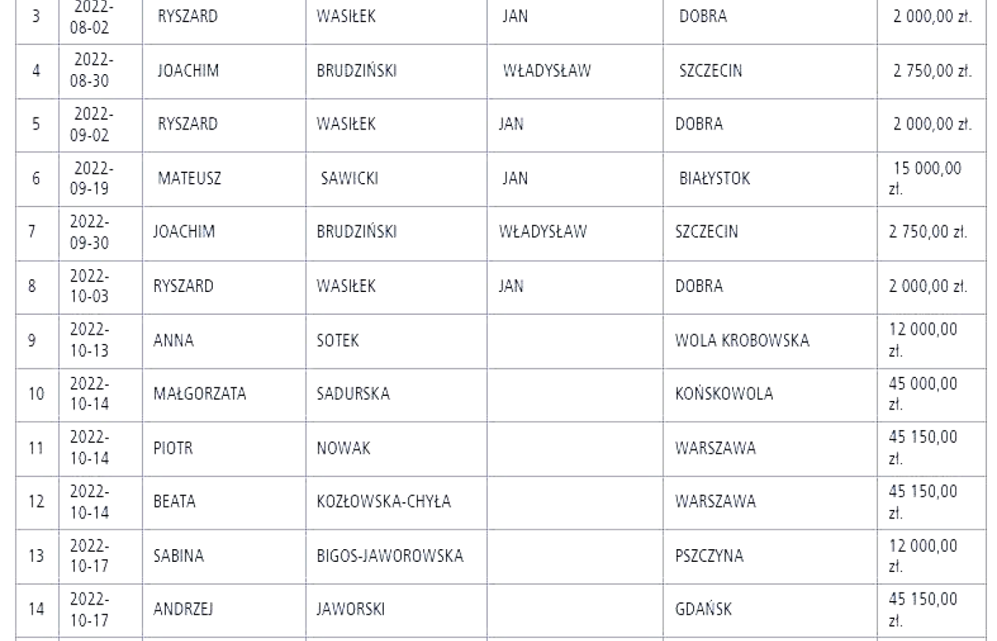Kilka dni wcześniej program „Czarno na białym” w TVN ujawnił, że 22 osoby z kierownictw spółek należących do PKN Orlen wpłaciły w 2019 r. na kampanie Beaty Szydło i Joanny Kopcińskiej po 74,5 tys. zł. Każdy z darczyńców łożył identyczne sumy na obie kandydatki PiS do Parlamentu Europejskiego – ich przelewy wynosiły między 1,5 a 11 tys. zł na każdą z nich. Co ważne, aż 13 osób przelało dokładnie tę samą kwotę, po 3 tys. zł, zarówno na Szydło, jak i Kopcińską.
