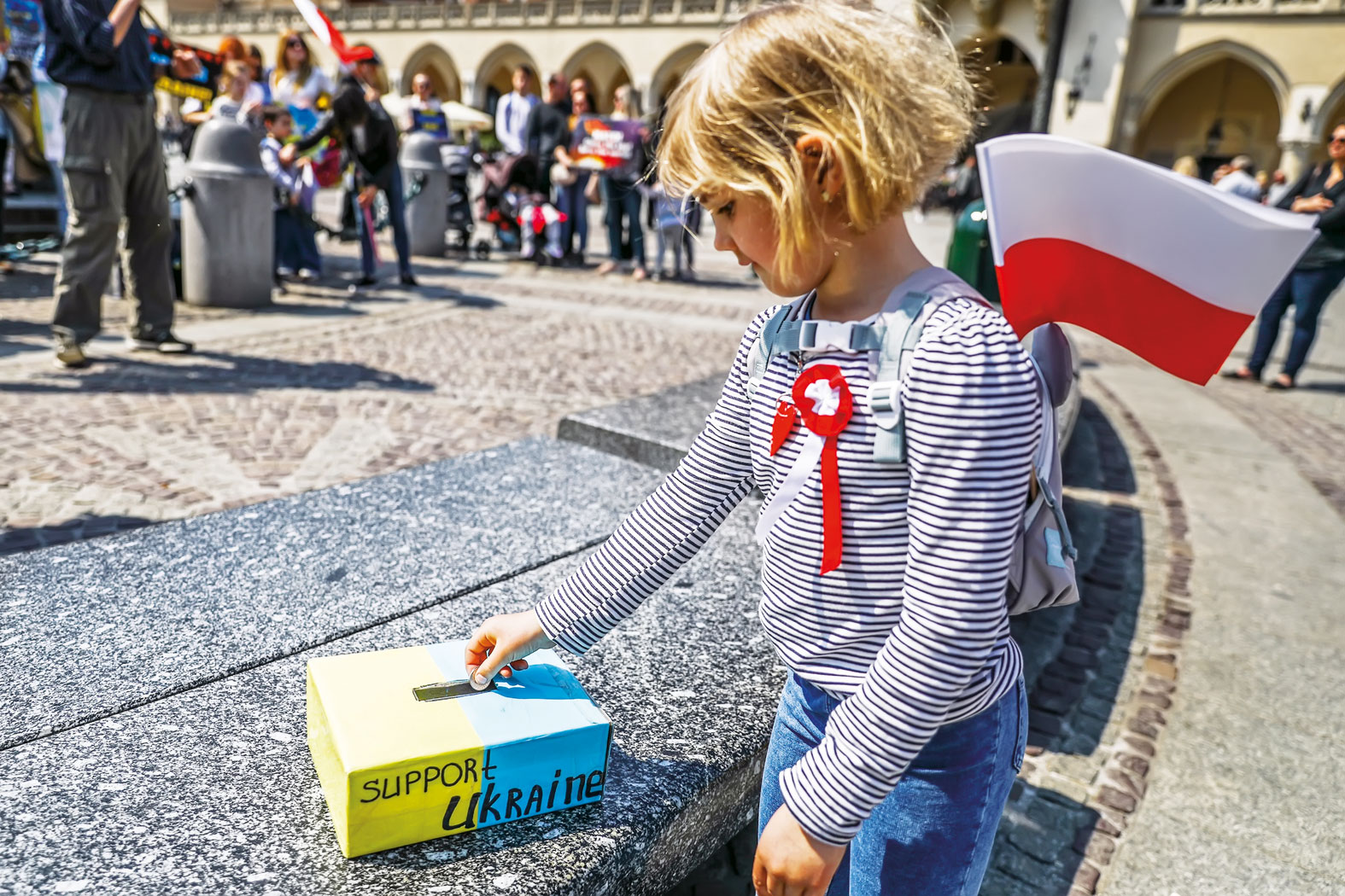 W dniu brutalnego ataku Rosji na Ukrainę (24 lutego) Polska z dnia na dzień stała się krajem przyfrontowym. Od początku wojny do naszego kraju wjechało ponad 8,5 mln Ukraińców. Większość z nich wróciła do siebie, a prawie 2 mln zostało w Polsce; to głównie kobiety i dzieci. Nigdy nie było tak dużej fali uchodźców w tak krótkim czasie. Według szacunków nawet 77 proc. Polaków ruszyło z pomocą. Po prostu zachowaliśmy się przyzwoicie wobec sąsiadów. Ze wsparciem pospieszyły samorządy i przedsiębiorcy – przygotowując centra pomocy, opiekę medyczną i psychologiczną, miejsca w szkołach i przedszkolach. Ogromne wyzwanie podjęły nie tylko duże miasta, jak Warszawa, Kraków czy Rzeszów (w którym w pewnym momencie niemal połowę mieszkańców stanowili Ukraińcy), ale też mniejsze miejscowości. Jak pisała niedawno „Rzeczpospolita”, polskie wsparcie może mieć wartość nawet 40 mld zł. Z tego 15,9 mld zł to pomoc publiczna. Na 9–10 mld zł obliczono prywatne wsparcie tylko w trzech pierwszych miesiącach po wybuchu wojny. Do dziś ta kwota urosła o kolejnych kilka miliardów.