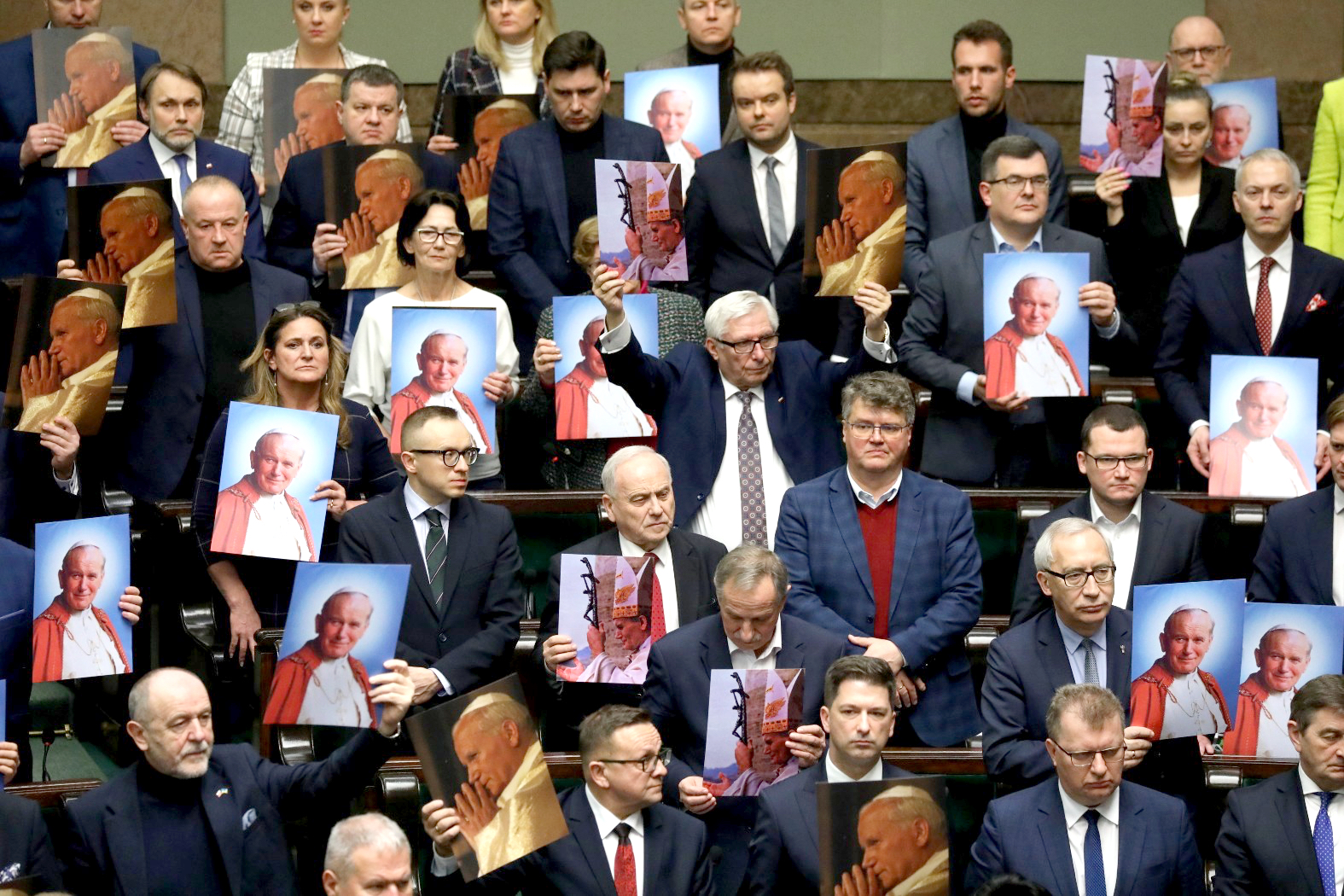 Sejm przyjął w czwartek uchwałę, w której Jan Paweł II został nazwany „najwybitniejszym Polakiem w historii” i „najwybitniejszym z ojców niepodległości Polski”, atakowanym „materiałami, których nie odważyli się wykorzystać nawet komuniści”. „Nie pozwolimy zniszczyć wizerunku człowieka, którego cały wolny świat uznaje za filar zwycięstwa nad imperium zła” – czytamy w przegłosowanej głównie przez posłów PiS uchwale.
