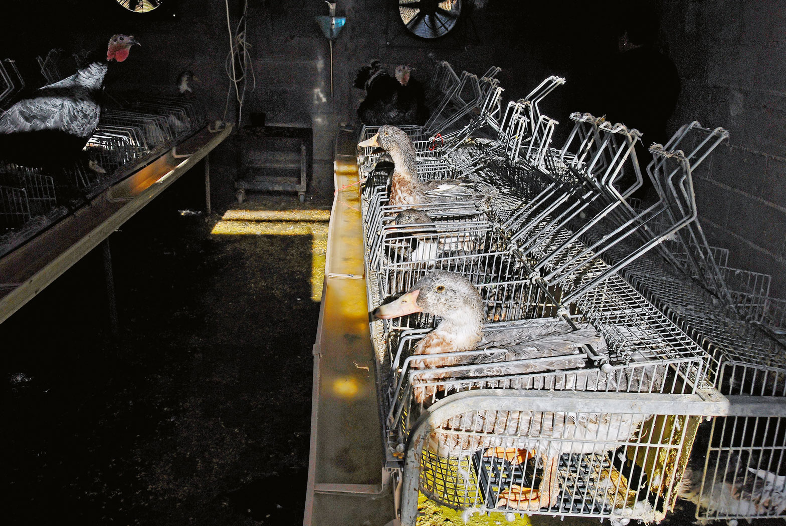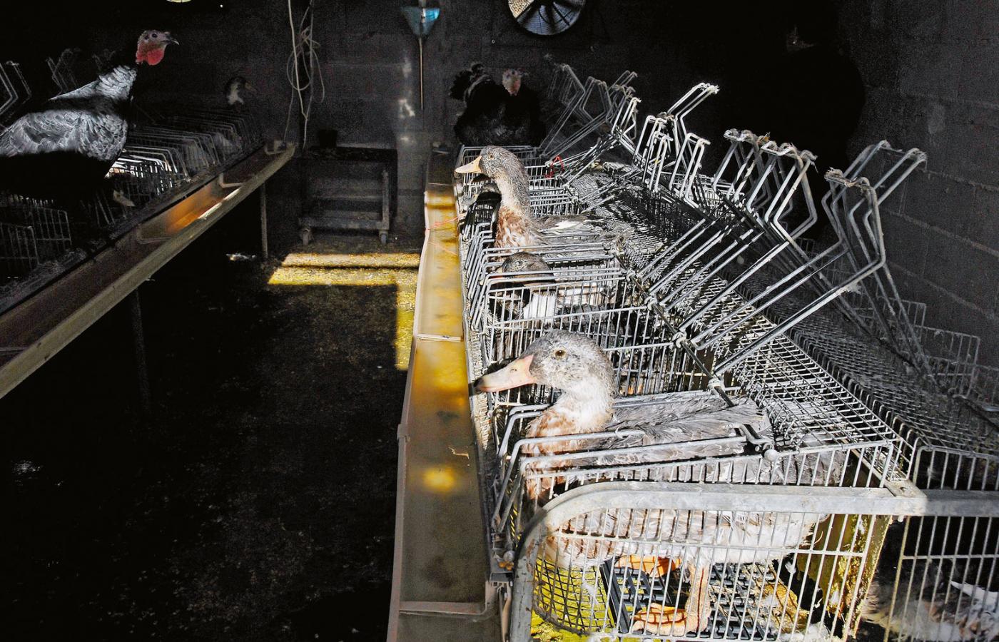 Kamera przesuwa się wzdłuż klatek wypełnionych kaczkami. Każdy ptak stoi w oddzielnej przegródce, z szyją i głową wysuniętą na zewnątrz. Nad nimi przesuwa się pompa ze zwisającą długą rurą. Pracownik fermy po kolei wpycha ją kaczkom do gardła, wtłaczając pokarm. Kilkakrotnie razy więcej, niż zjadłyby same. W dodatku pasza to głównie kukurydza, która pęcznieje w żołądku. Przymusowe karmienie powtarza się 2–3 razy dziennie. Takie tortury ptaki muszą znosić przez 2–3 tygodnie, w trakcie których wiele z nich próbuje popełnić samobójstwo, waląc głową o kraty. Wiele umiera na skutek pęknięcia żołądka, przebicia przełyku czy gwałtownych wymiotów prowadzących do zachłyśnięcia. Potem te, które przeżyły, idą pod nóż, a z ich zdegenerowanych, chorych wątrób w zakładach mięsnych produkuje się przysmak smakoszy: foie gras, inaczej pasztet strasburski.