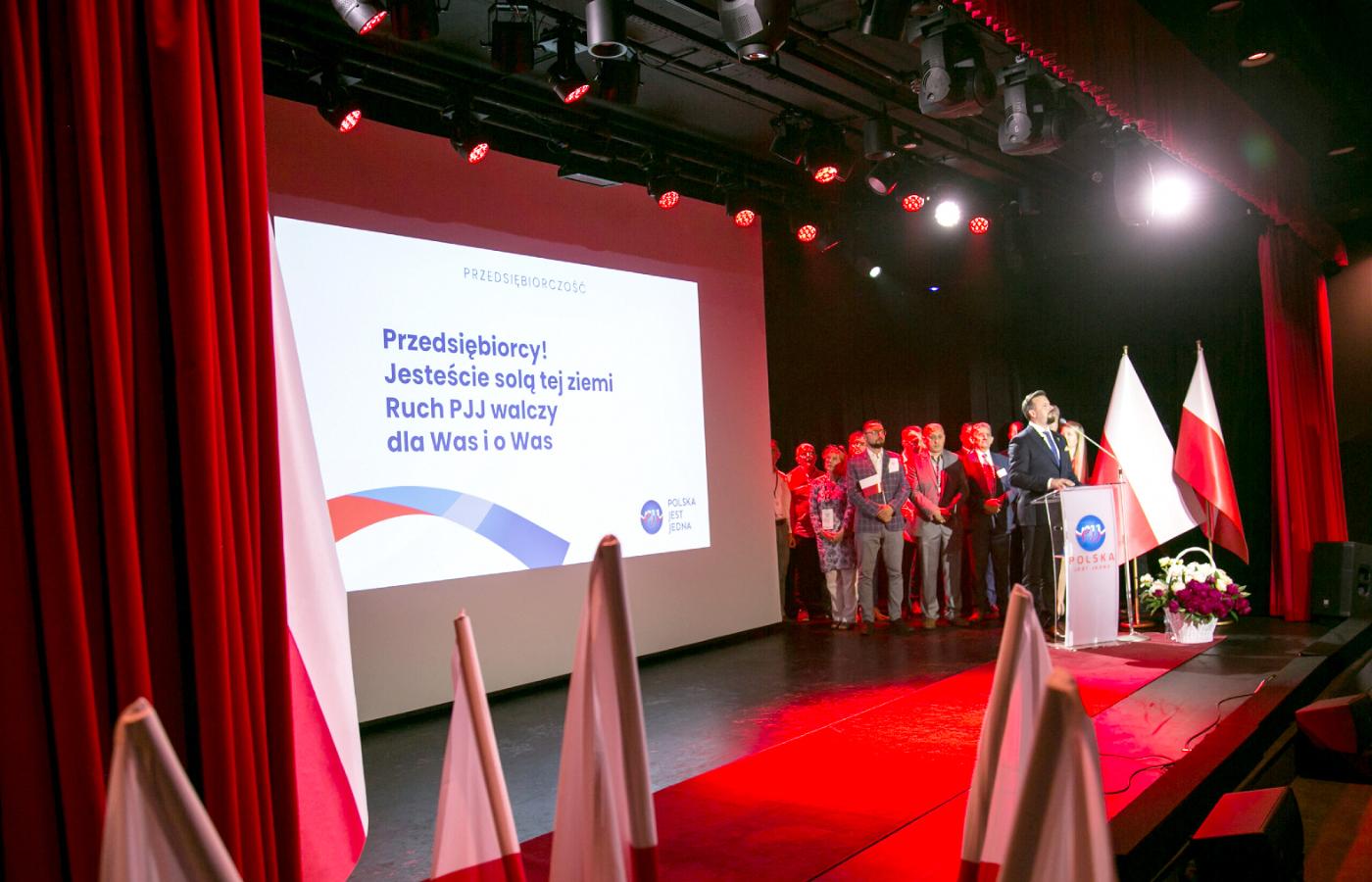 Polska Jest Jedna – partia wyrosła ze splotu stowarzyszenia przeciwników segregacji sanitarnej z ruchem antyszczepionkowców w czasie covid-19. Teraz chce startować w wyborach parlamentarnych. Wystawi kandydatów we wszystkich okręgach. Ma już za sobą czerwcowy kongres programowy w Warszawie i jest na etapie zachwalania swoich struktur w stolicach 16 województw oraz organizacyjną obecnością w 140 z 380 naszych powiatów. Póki co. Jak na partię zarejestrowaną w lutym tego roku – sporo.