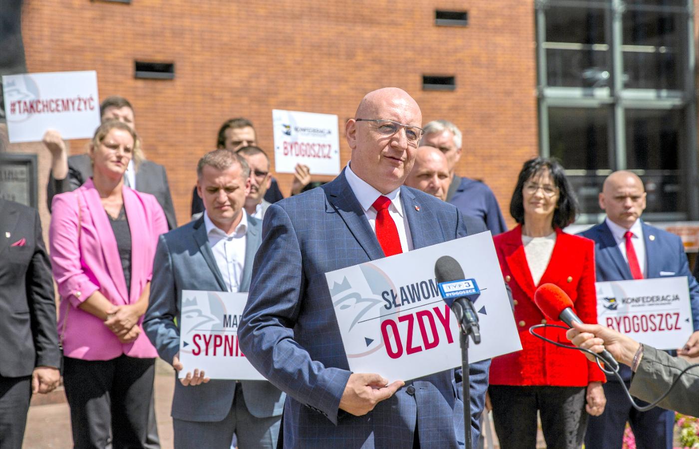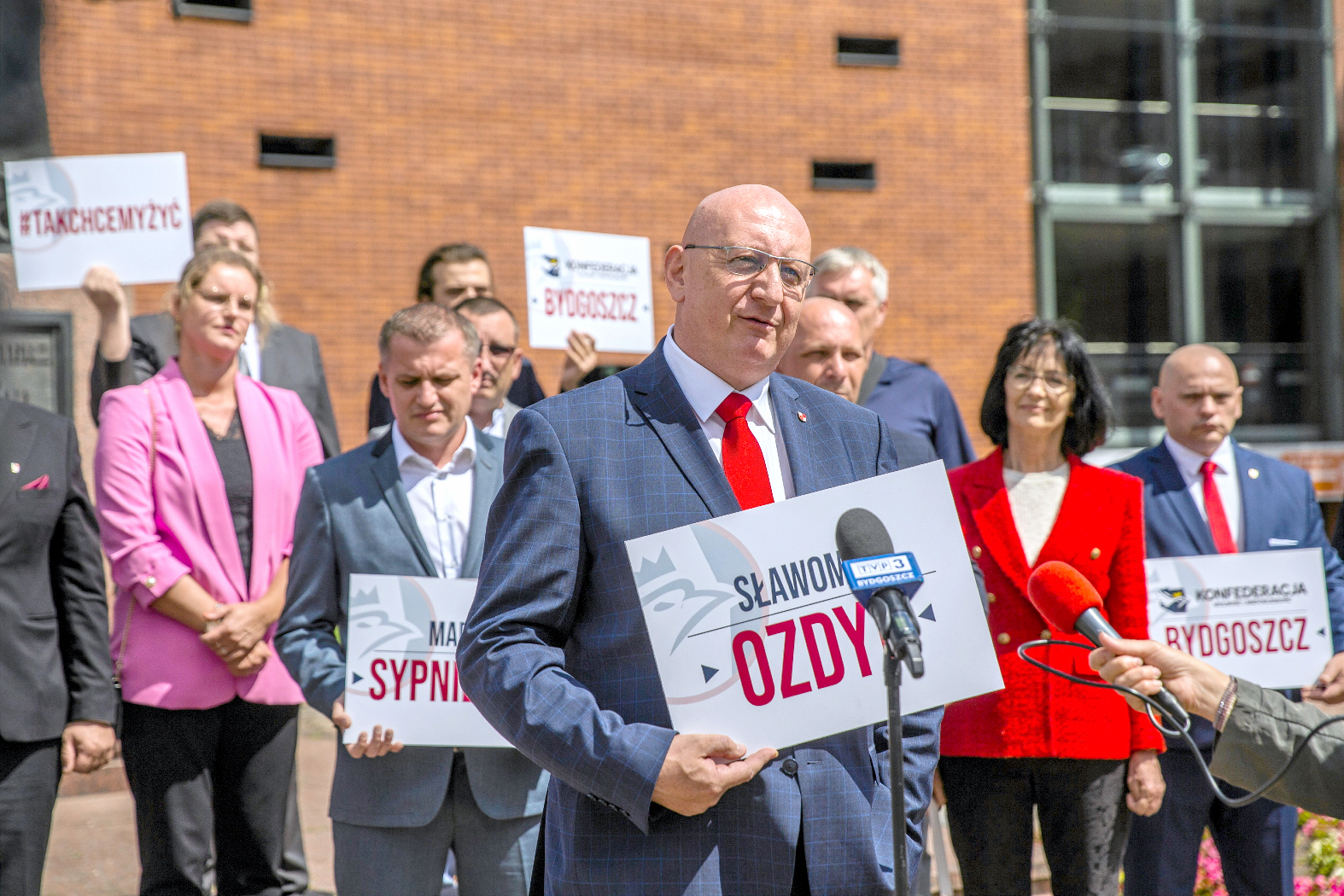 W Bydgoszczy numerem dwa na liście ma być Sławomir Ozdyk. To on towarzyszył w lutym 2022 r. posłowi Grzegorzowi Braunowi w Zielonej Górze, gdy ten ogłaszał, że czas przygotowywać obronę w ramach własnego domostwa, bo „mogą się pojawić ludzie zdeterminowani do walki o pietruszkę”, „wojna jest tu wykorzystywana jako pretekst do wprowadzenia operacji radykalnej zmiany struktury ludnościowej RP w jej obecnych granicach”, bo nie chodzi o pomoc uchodźcom wojennym, ale operację masowego przesiedlenia. Przedstawiono go wtedy jako „eksperta Konfederacji Korony Polskiej ds. bezpieczeństwa” i członka jej Biura Krajowego.
