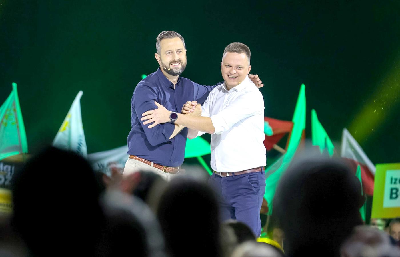 Owa konieczność dyktuje formę obecnych wystąpień. Doskonale było to widać podczas wizyty Hołowni i Kosiniaka-Kamysza na Campusie Polska Przyszłości pod koniec sierpnia. Od ich wejścia na scenę rzucało się w oczy szczególne przywiązanie do formy: reżyserowana komitywa, demonstrowanie przepajającej obu partnerów energii i żywotności. Co w przypadku powściągliwego emocjonalnie Kosiniaka mogło zresztą razić sztucznością.