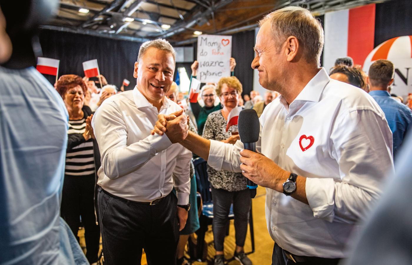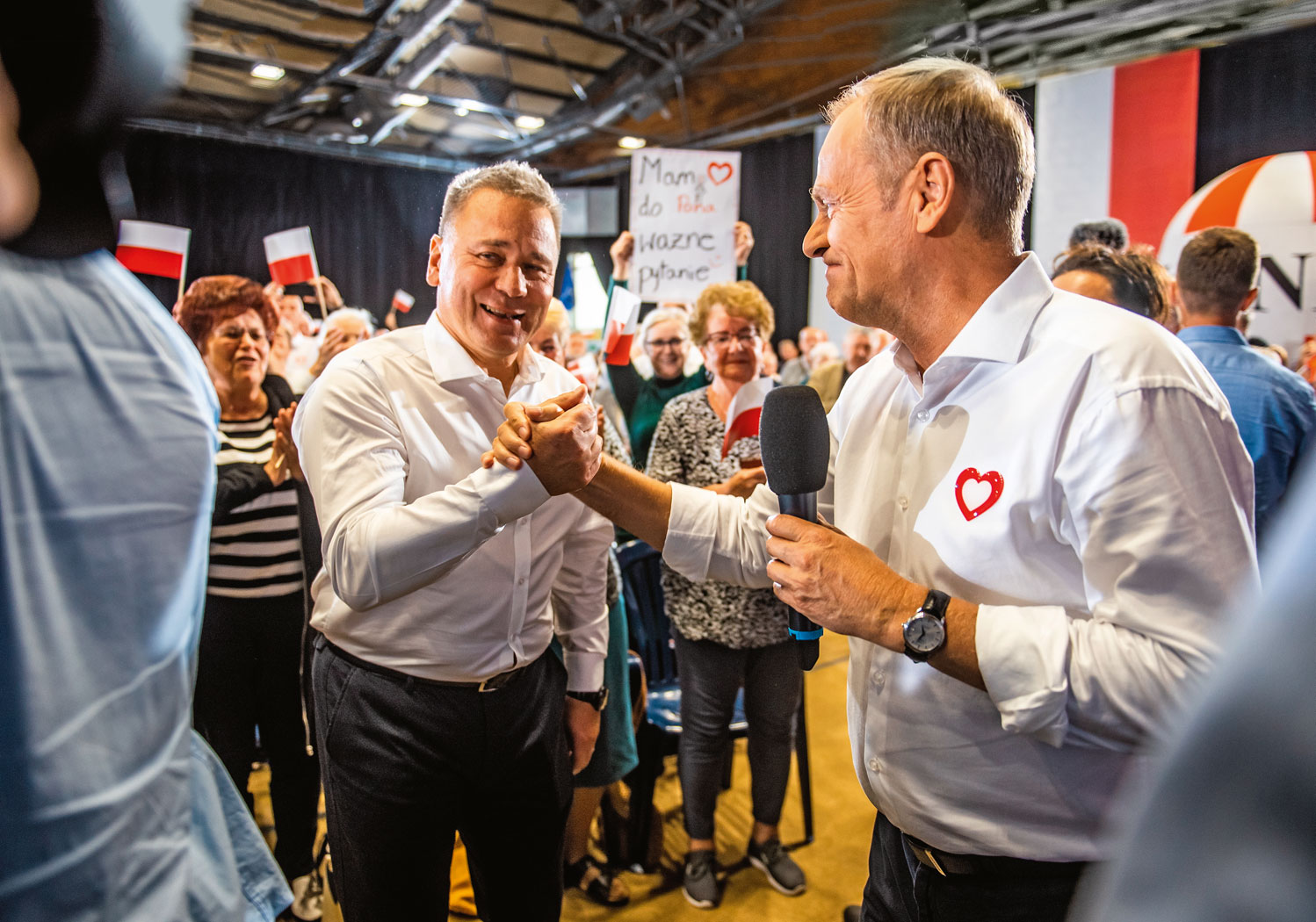 Wystarczy, żeby każdy, kto był na Marszu Miliona Serc, namówił jedną osobę. Nie dziesięć, nie pięć, nawet nie trzy. Wystarczy, że namówi jedną osobę, żeby zagłosowała na opozycję, a czarne zamieni się w białe” – mówił Tusk na spotkaniu z mieszkańcami Konina 3 października. To było pierwsze masowe spotkanie po warszawskim marszu, chodziło więc przede wszystkim o mobilizację wyborców i o to, żeby podtrzymać entuzjazm, który było widać na ulicach stolicy. – Będziemy chcieli pokazać, że rzeczywiście olbrzym się obudził również u nas – zapowiadał miejscowy poseł. Emerytka Bożena Strugarek: – Byłam na marszu w Warszawie, piękne przeżycie. Teraz chcę być tu, bo lubię słuchać, co Tusk mówi i jak mówi, wierzę… nie, jestem pewna, że razem wygramy i wreszcie wróci normalność.