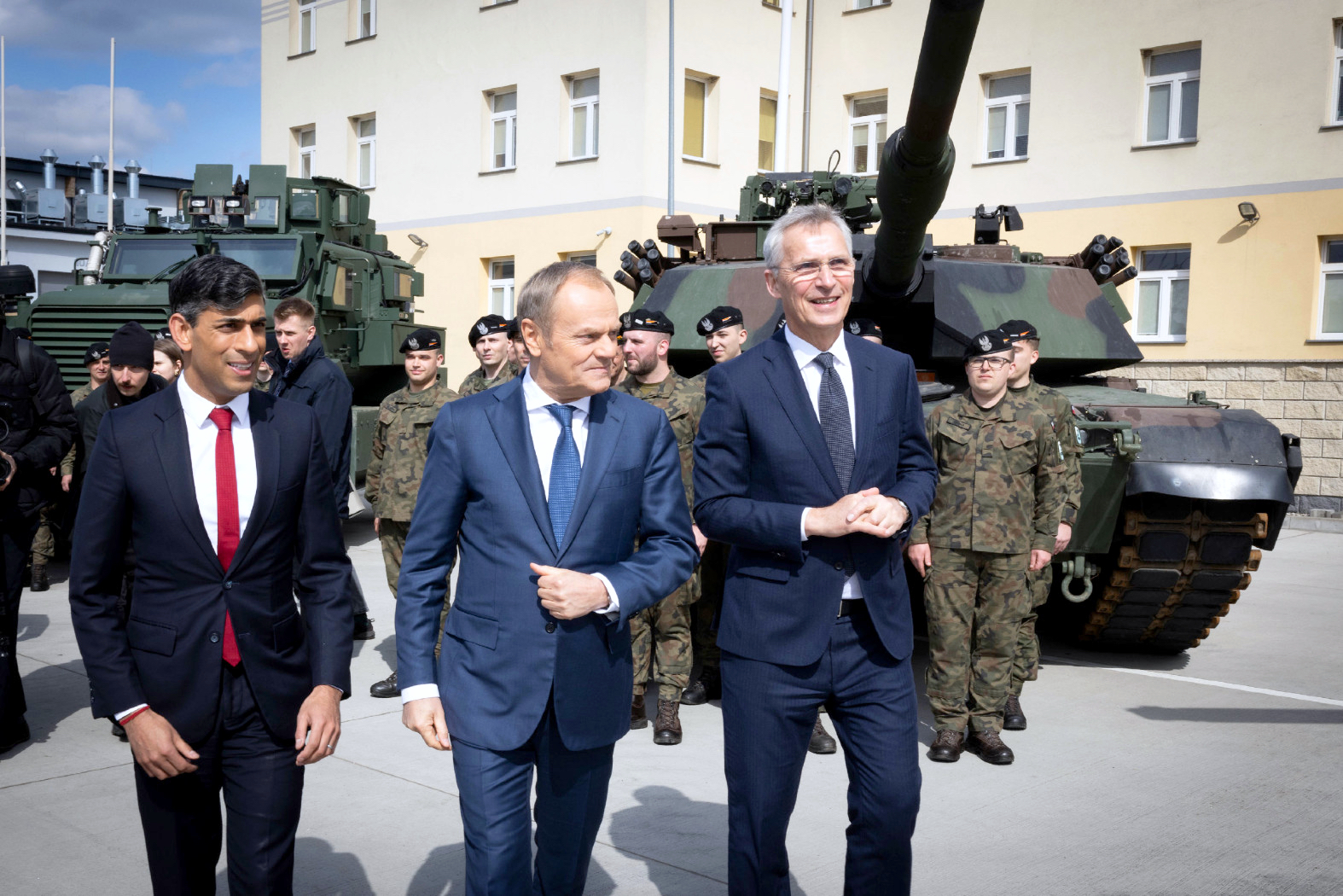 Przed lipcowym szczytem NATO w Waszyngtonie odwiedzili Polskę sekretarz generalny NATO Jens Stoltenberg oraz premier Wielkiej Brytanii Rishi Sunak. Podczas spotkania z żołnierzami brygady pancernej im. Tadeusza Kościuszki wygłosili przemówienia i odpowiadali na wiele pytań mediów. Spotkanie transmitowały nie tylko polskie telewizje informacyjne, ale także BBC World News, kanał o zasięgu globalnym. To oznacza, że wizycie nadano charakter znaczącego wydarzenia międzynarodowego.