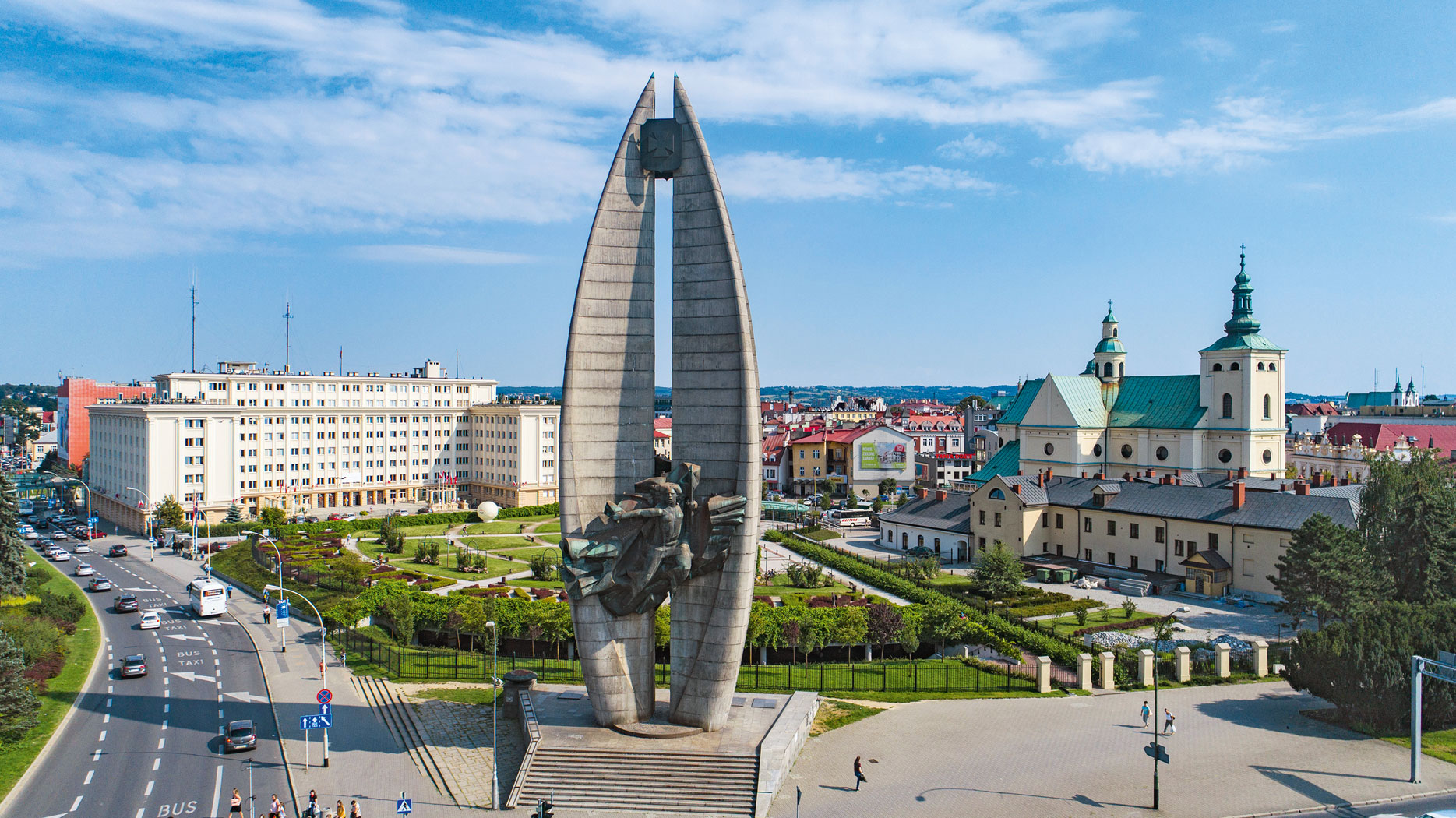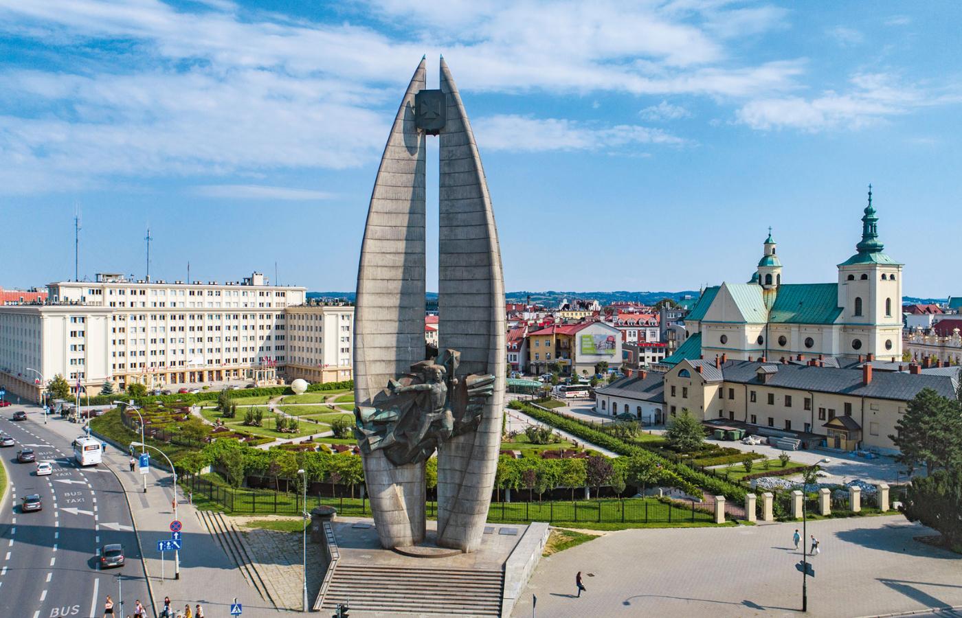 Ten rzeszowski jest dziś dziełem sztuki i zabytkiem historii. Jest oszczędny, można powiedzieć, surowy: betonowe bryły symbolizują dwa liście laurowe połączone spiżowymi postaciami Nike oraz robotnika, chłopa i żołnierza.