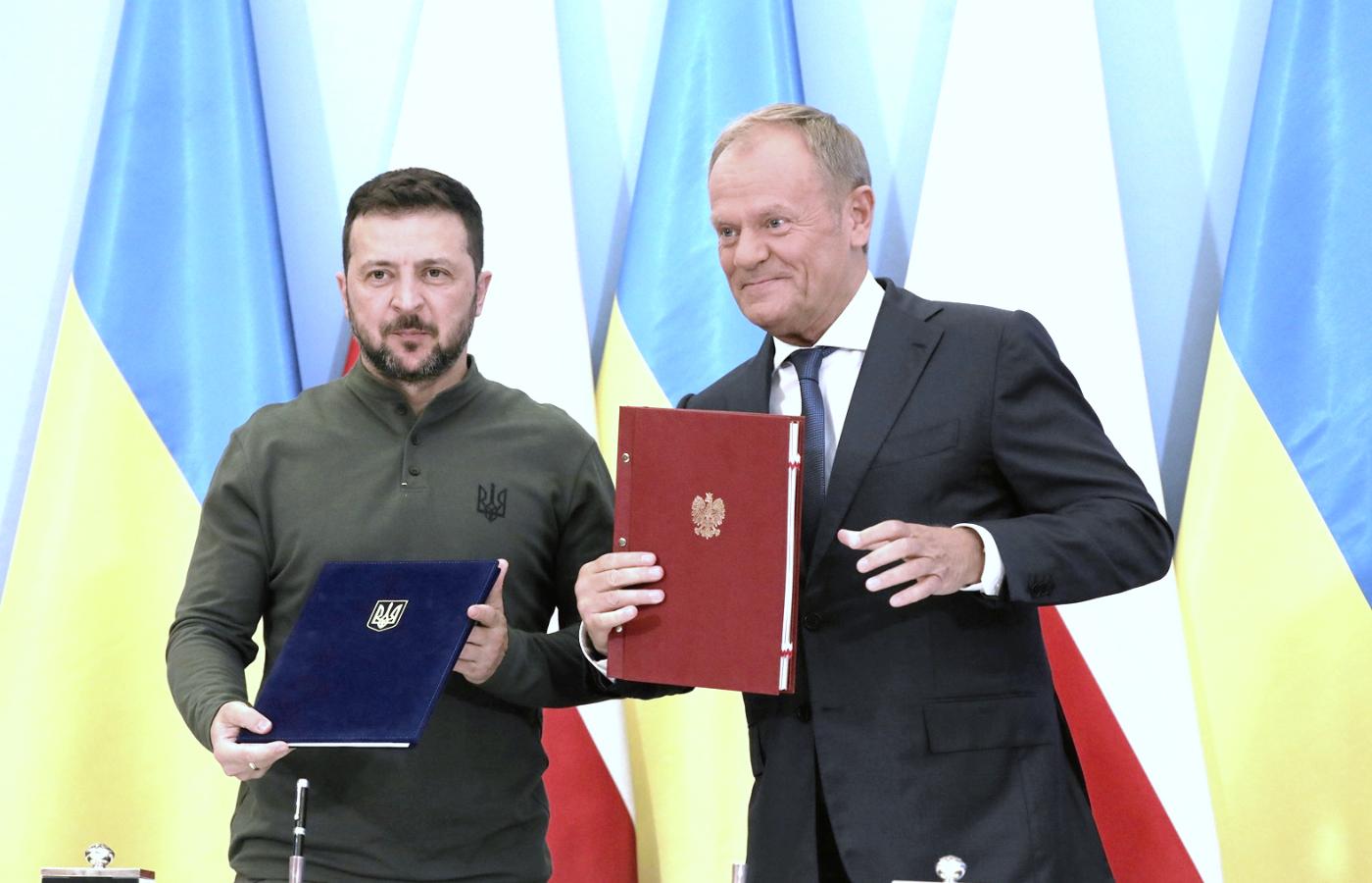Wołodymyr Zełenski i premier Donald Tusk podpisali w poniedziałek w Warszawie ukraińsko-polską umowę w dziedzinie bezpieczeństwa. „Dokument zawiera praktyczne wzajemne zobowiązania, a nie puste obietnice” – podkreślał Tusk.