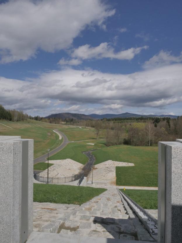 W oddali wyraźnie widać masyw Śnieżnika. Szewczyk był zaangażowany w budowę zbiornika dla firmy Porr. Przyznaje, że jest to ingerencja w krajobraz i lokalny ekosystem. Infrastruktury przeciwpowodziowe zajmują powierzchnię od 21 do 118 hektarów (czyli tyle, ile zajmowałoby od 29 do 165 boisk piłkarskich). Inżynier zaznacza jednak, że w każdym miejscu posadzono tysiące drzew, aby zrównoważyć wpływ prac na środowisko.