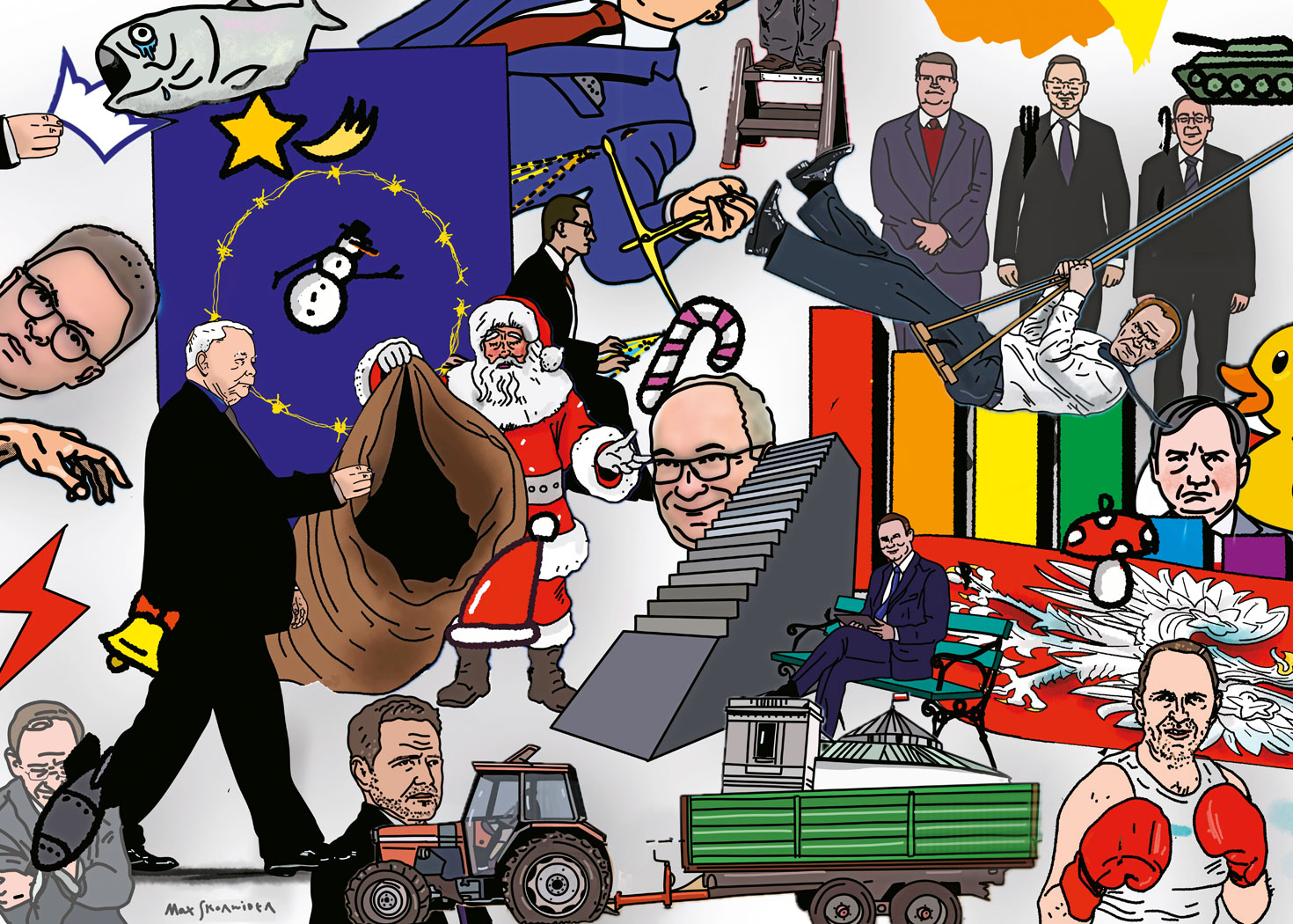 Najbardziej dostrzegalnymi zmianami okazały się te, które nastąpiły jeszcze w grudniu 2023 r., czyli uwolnienie TVP od ekipy PiS, oraz w styczniu 2024 r., kiedy minister Adam Bodnar wprowadził nowych ludzi do prokuratury. W tym samym miesiącu na terenie Pałacu Prezydenckiego zatrzymano Mariusza Kamińskiego i Macieja Wąsika; doprowadzono ich do aresztu śledczego po tym, jak zostali prawomocnie skazani za przestępstwa z czasów, kiedy byli szefami CBA. Zaczęły też działać trzy komisje śledcze: ds. Pegasusa, afery wizowej i wyborów kopertowych. A nowy Sejm, prowadzony przez Szymona Hołownię, budził sensację. Nowości te tworzyły atmosferę wielkiej zmiany.