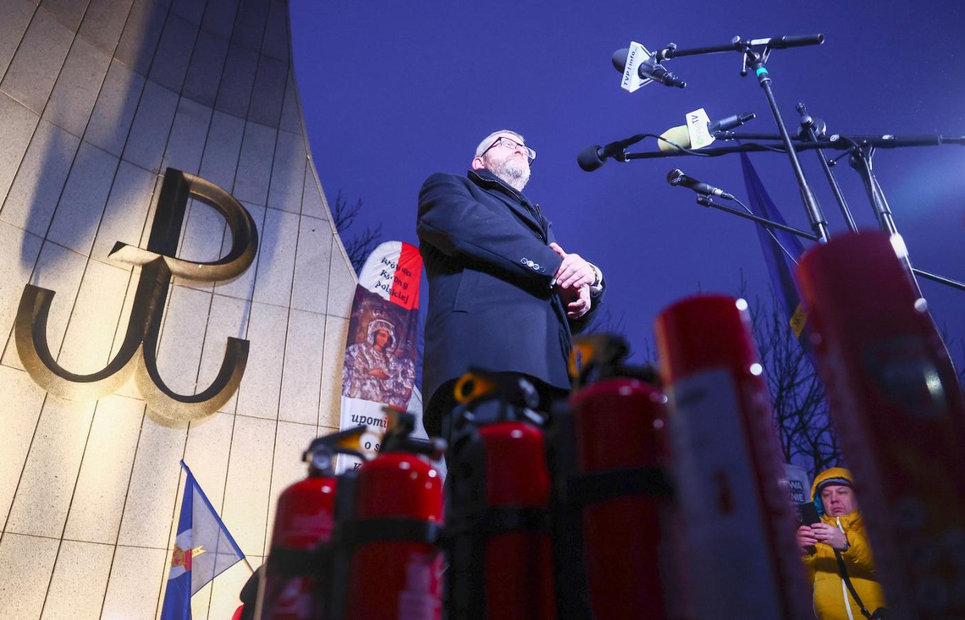 Chanuka w Sejmie, a przed nim protest z gaśnicami. Grzegorz Braun uprawia demagogię