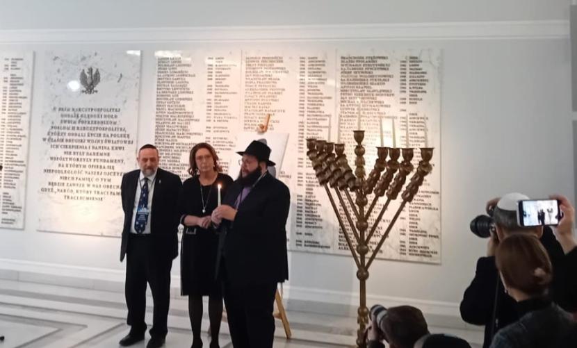 Rabin Stambler przy wsparciu wicemarszałkini Senatu Małgorzaty Kidawy-Błońskiej, która zapaliła szamasz, zapalił sześć świec: – Chanuka sameach – zabrzmiało na koniec uroczystości.