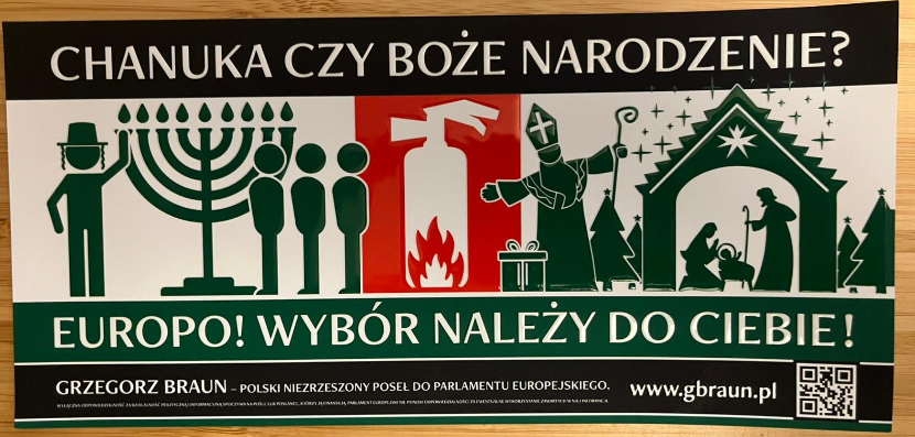 Takim okrzykiem przywitano tymczasem europosła i lidera Konfederacji Korony Polskiej Grzegorza Brauna. Wśród skrajnej prawicy słowo „Polin” oznacza realizację przez Polskę interesów proizraelskich lub proizraelskich i proukraińskich („Ukropolin”). Polityk wyraził zdziwienie tymi „wyważonymi i oględnymi” stwierdzeniami. – Dla nas, nie-Żydów, wybór jest jeden: służyć – tłumaczył. Zwrócił uwagę, że w innym kontekście dobra służba mogłaby być czymś pięknym. – Otóż ta perspektywa jest przed nami, nie-Żydami, zamknięta, ponieważ my mamy służyć jak zwierzęta, jak bydło. (…) Ci, którzy go odrzucili [Żłóbek i Krzyż Chrystusowy], którzy go nie uznali, uznali za stosowne kłamać na temat chrześcijaństwa i szerzyć wśród swoich pobratymców, wśród swoich dzieci, z pokolenia w pokolenie przekazywać tę straszną naukę o ludziach nadludziach i podludziach bydlętach.