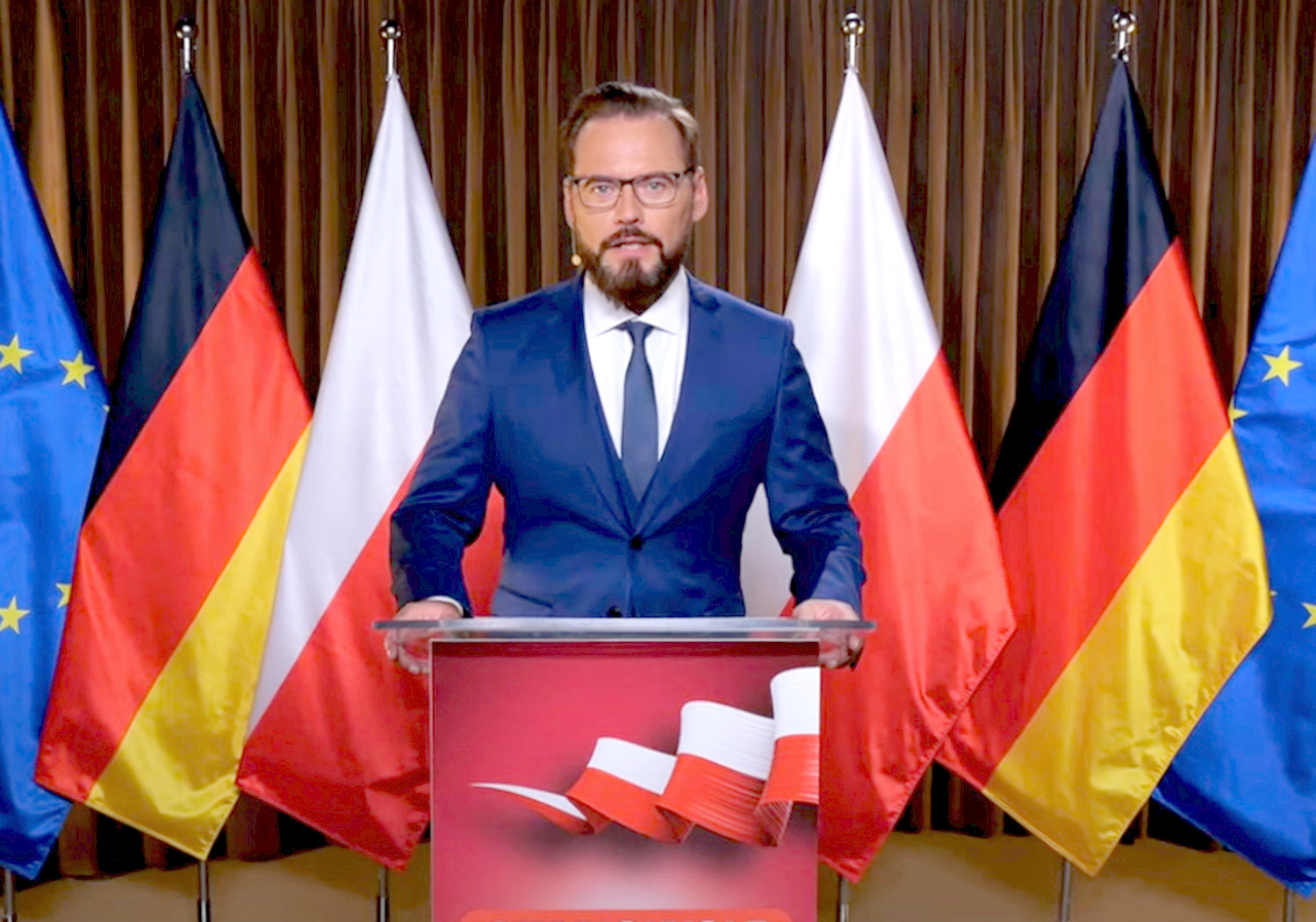 Program Stanowskiego trwał ledwie kilka minut, ale rekwizytów było w nim co niemiara: od flagi niemieckiej, przez nagrania głosu Wojciecha Jaruzelskiego, aż po koszulkę Messiego. Ta ostatnia chyba ma związek z dawną profesją Stanowskiego, który był dziennikarzem sportowym.