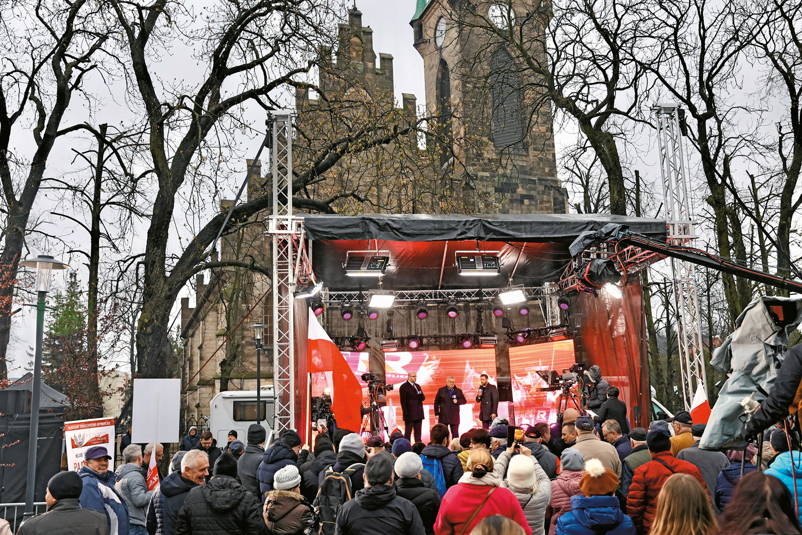Tłum nie zmienił jednak swojego faworyta: „Karol Nawrocki, prezydentem Polski!” – wiwatowały Kluby „Gazety Polskiej” zgromadzone w pierwszych rzędach. Ogółem na koneckim rynku wyczuwalny był jednak chaos: „reporterzy” Republiki biegali z mikrofonami, tłum przekrzykiwał kandydatów... W tle zaś ostatni wielkanocny stragan z kiełbasą zamykał witrynę.