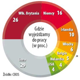 Zmieniła się też geografia wyjazdów. W latach poprzedzających wejście do Unii ponad połowa Polaków wyjeżdżających za granicę lądowała w Niemczech (55 proc.), 12 proc. w Anglii i aż 8 proc. w USA – wynika z badań Centrum Badania Opinii Społecznej (CBOS). Otwarcie przez niektóre kraje rynku pracy dla Polaków spowodowało, że co czwarty kandydat na emigranta jedzie do Wielkiej Brytanii (26 proc.), do Niemiec już tylko 16 proc., a do małej Irlandii aż 10 proc. Ameryka, skąd nie można przylecieć na weekend do Polski, bo nie wjedzie się już z powrotem, mocno straciła na atrakcyjności. Także dlatego, że mocno osłabł dolar. Na podróż za wielką wodę decyduje się teraz zaledwie 4 proc. wyjeżdżających. To tyle samo co do małej Holandii.