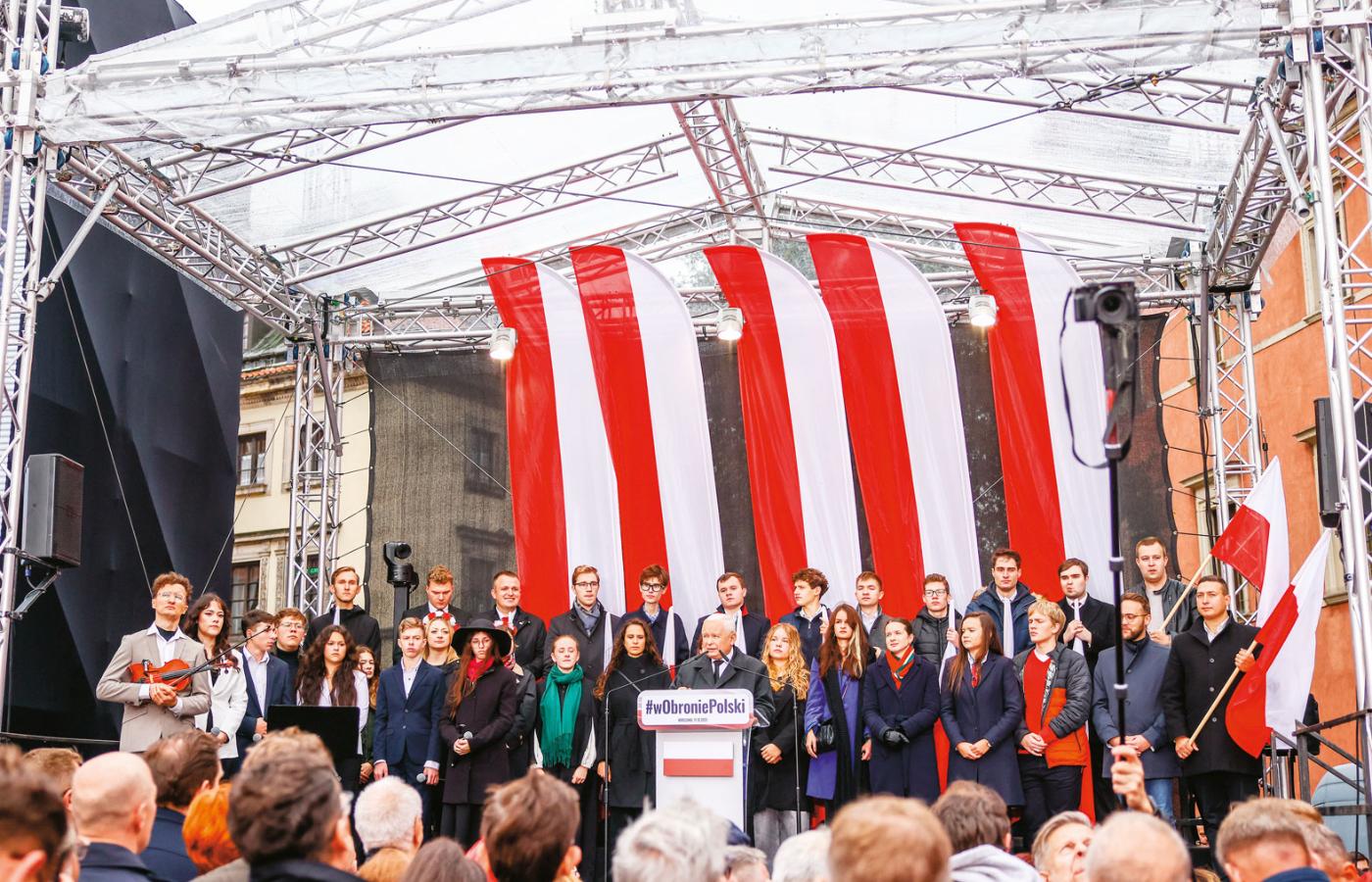Gdy Jarosław Kaczyński pod koniec lipca zapowiadał antyimigrancką demonstrację 11 października w Warszawie, wezwał na nią „wszystkie siły patriotyczne”. Później kilka razy apelował o jak najliczniejszy udział, a posłowie PiS dostali zalecenie, by zorganizować transport dla uczestników. Miało to być mocne wejście w polityczną jesień. Jednak temat imigracji, który latem rozgrzewał prawicową publiczność, stracił na atrakcyjności, także z powodu deficytu imigrantów. PiS dołożył zatem do agendy demonstracji protest przeciwko umowie z Mercosur, co również okazało się umiarkowanie magnetyczne. I tak wiec stał się protestem uogólnionym, „przeciw polityce Tuska”, a Kaczyński na placu Zamkowym zawołał po prostu: „Precz z Tuskiem, musimy odwołać jego rząd!”, budząc entuzjazm niezbyt licznej publiczności.