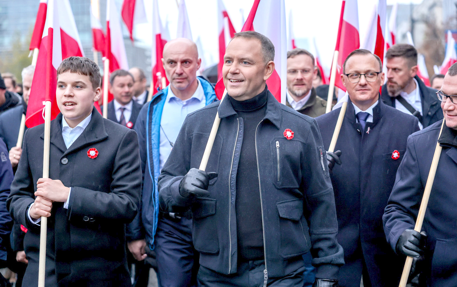 Co ciekawe, Bosak, dziś w wyraźnie bojowym nastroju, jako główne źródła zagrożeń wskazał „Brukselę, Berlin, Strasburg”, ale i dodał, że los Polski nie będzie się decydował „w Waszyngtonie czy Moskwie”. To istotny detal, bo wskazuje, że Bosak, świadom rosnącej pozycji swojej formacji politycznej, moderuje przekaz. Wcześniej na marszu brakowało jednoznacznie antyrosyjskich deklaracji, a Ruch Obrony Granic i Bąkiewicz egzystencjalne zagrożenie dla Polski widzą raczej na Zachodzie.