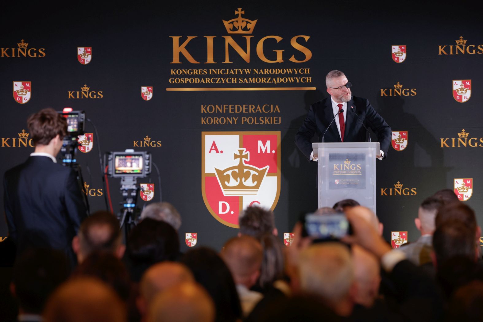 Łochów, 31 stycznia, piękny, choć potwornie mroźny zimowy poranek. Dojazdu do miejscowego hotelu Arche wyjątkowo strzeże paramilitarna grupa Bronimy Polskich Granic. Dwóch umundurowanych wolontariuszy wpuszcza na teren uczestników, dziennikarzy, ale też VIP-ów: panelistów i mecenasów wydarzenia. To KINGS: Kongres Inicjatyw Narodowych, Gospodarczych i Samorządowych, pierwsza tak duża – bo przewidziana na 750 gości – impreza organizowana przez Koronę Polską, partię Grzegorza Brauna, która już rok pływa po wodach politycznej samodzielności, po tym jak zdecydowała się opuścić konfederacki sojusz ze Sławomirem Mentzenem i Krzysztofem Bosakiem.