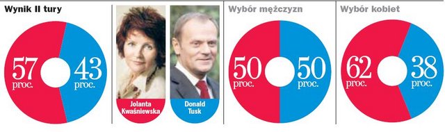 Wielu widzi wynik Kwaśniewskiej jako zapowiedź awansu kobiet w polskiej polityce. Ale gdyby rzeczywiście istniała taka zależność, już po poprzednich wyborach prezydenckich powinniśmy dostrzec większych udział kobiet w polityce. Tymczasem stało się coś dokładnie odwrotnego – doszło do gwałtownej maskulinizacji stylu uprawiania polityki. Owszem, Platforma Obywatelska wprowadziła do Parlamentu Europejskiego bez porównania więcej kobiet niż którakolwiek z polskich partii, ale ile z nich należało wcześniej do Platformy i awansowało w strukturach tej partii? I dlaczego najbardziej znaną posłanką Platformy pozostaje Joanna Mucha?