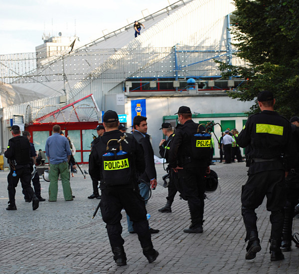 Teraz zarówno kupcy, policja, jak i miasto świetnie zdawali sobie sprawę z roli, jaką na miejscu odgrywały media. Kiedy jeden z protestujących zerwał z głowy czapkę ochroniarza z firmy Zubrzycki, tłum zaczął po niej skakać i opluwać ją. Działo się tak, dopóki nie nagrali tego kamerzyści. Zdobywca czapki schował ją do kieszeni i pobiegł podobny spektakl odtańczyć przed tymi kamerzystami, którzy jeszcze nie nagrali takiego materiału. – Ludzie oglądają telewizję i uczą się, co przyciąga uwagę kamer. Nie ma się co dziwić, że później powtarzają te gesty – mówi Grzegorz Miecugow.