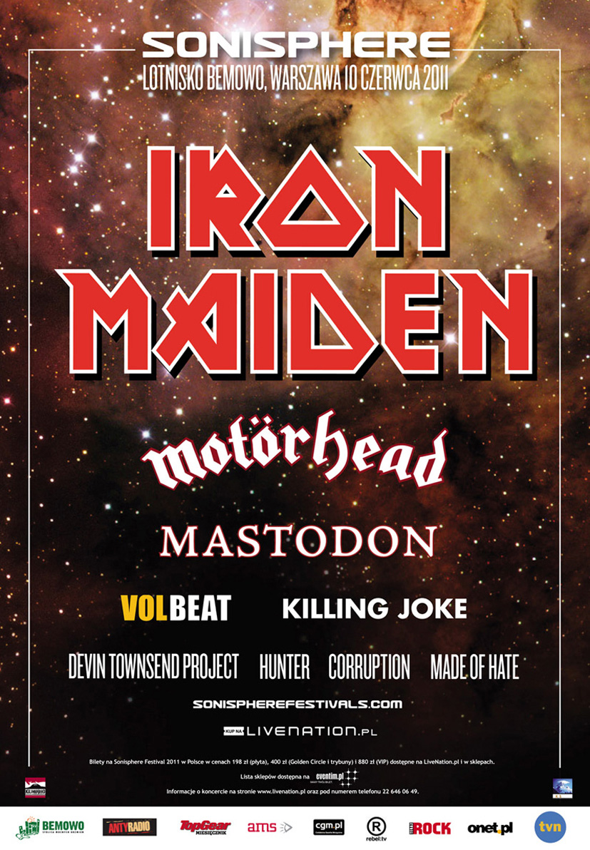 Po zeszłorocznym sukcesie pierwszej edycji Sonisphere ze słynną wielką czwórką thrash metalu (Metallica, Anthrax, Slayer, Megadeth), którą witało u nas 80 tys. fanów, przyszedł czas na jeszcze starsze dinozaury. Na Bemowie zagrają zespoły dla heavy metalu kluczowe: Iron Maiden i Motörhead, a obok nich zadziwiająco – ale trafnie – dobrany postpunkowy Killing Joke, punkt wyjścia dla wielu młodszych metalowych zespołów. Te ostatnie z kolei reprezentować będą Mastodon i Devin Townsend Project. Najbardziej barwną międzypokoleniową publiczność ma grupa Iron Maiden, od dekady znów w najlepszym składzie. „Żelazna Dziewica” jest wieczna – niedawno polski zespół Baaba Kulka wydał płytę z autorskimi wersjami utworów tej grupy, a Lady Gaga oświadczyła, że jest jej fanką.