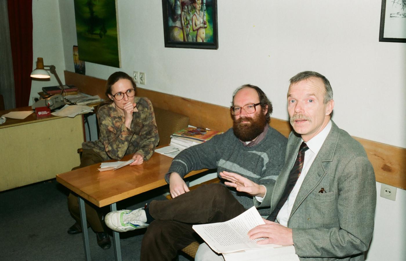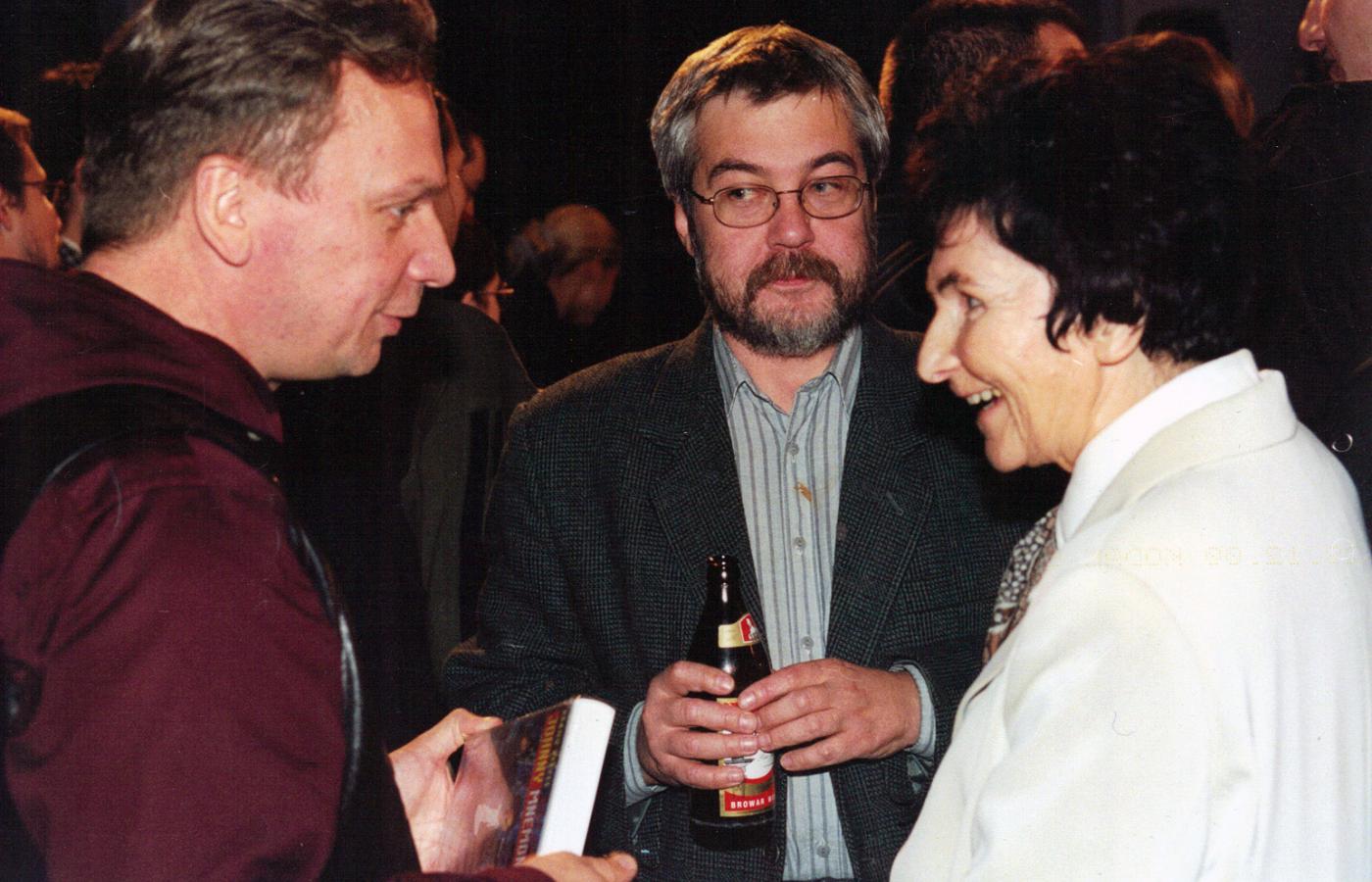 Na comiesięcznych spotkaniach w Mazowieckim Centrum Kultury na Elektoralnej pojawiali się m.in. (od lewej) Grzegorz Ciechowski, Mirosław Kowalski (SuperNowa) i Jadwiga Zajdel.Fantastyka/Materiały prywatne Na comiesięcznych spotkaniach w Mazowieckim Centrum Kultury na Elektoralnej pojawiali się m.in. (od lewej) Grzegorz Ciechowski, Mirosław Kowalski (SuperNowa) i Jadwiga Zajdel.