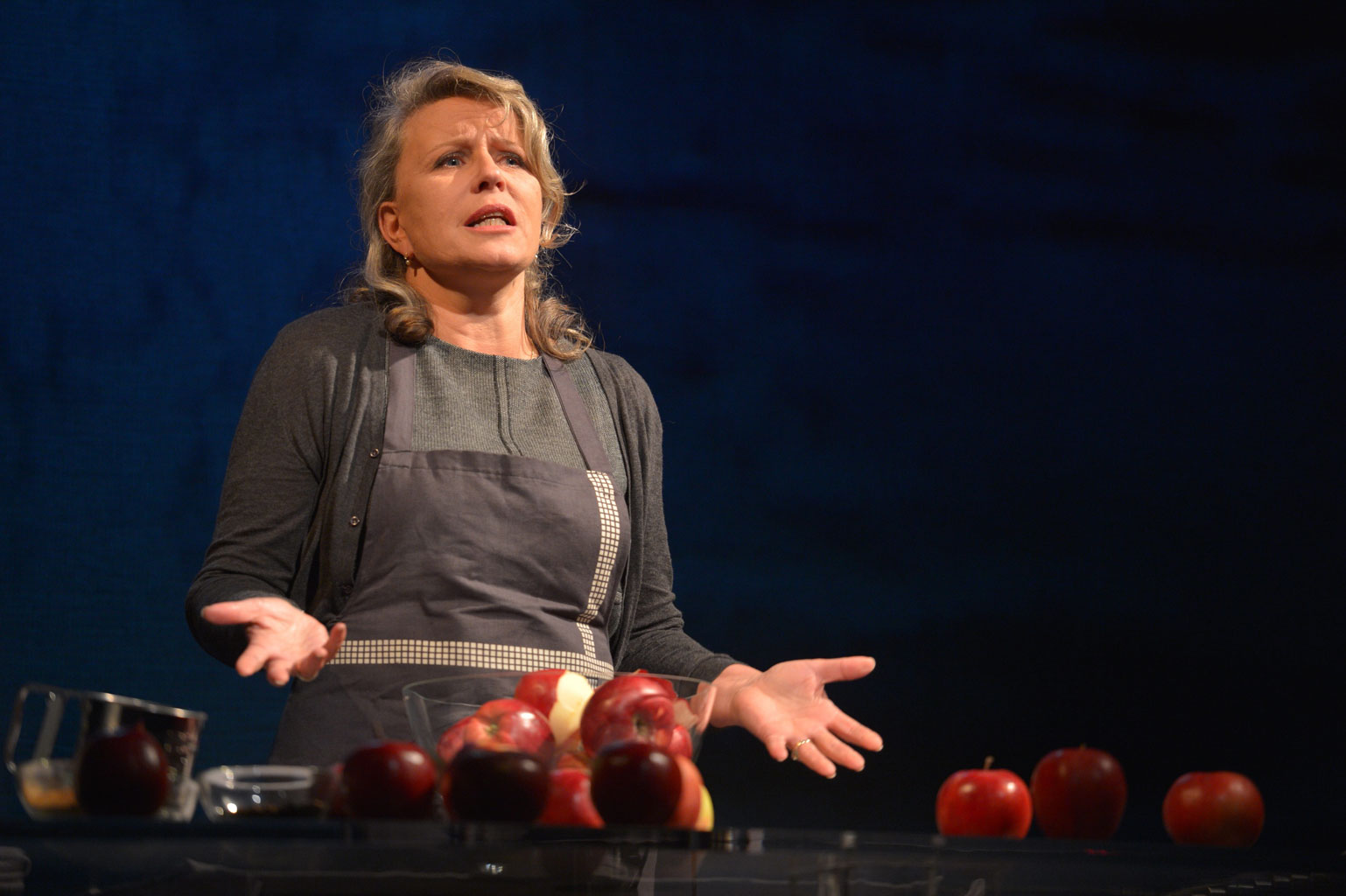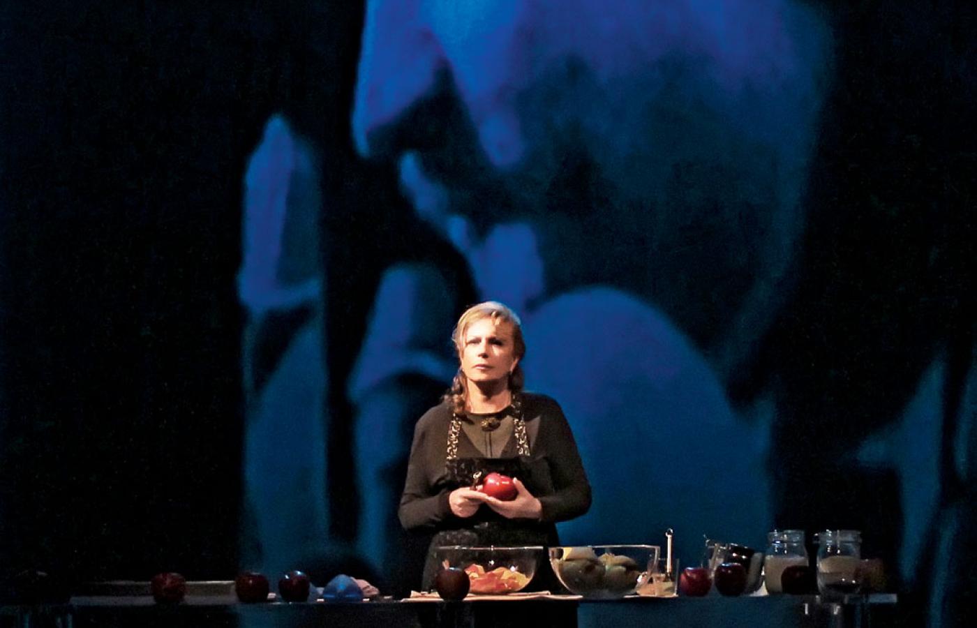 Krystyna Janda, tak jak zapowiadała, nie ma zamiaru grać Danuty Wałęsowej, po prostu mówi jej tekstem, obierając jabłka na szarlotkę. Choć są momenty, np. gdy opowiada o spotkaniach z Ojcem Świętym albo grozie stanu wojennego, kiedy śmielej używa środków aktorskich, zawsze z bardzo dobrym skutkiem. W drugiej części spektaklu szarlotka, przygotowywana według przepisu Danuty Wałęsowej, już się piecze, co możemy podglądać, ponieważ piekarnik jest przeźroczysty („Fantastyczny piekarnik! – zauważyła jedna z pań, wychodząc z przedstawienia. – Muszę taki mieć!”). Z tyłu sceny niemal przez cały czas lecą zdjęcia filmowe, głównie historyczne, ale potem też prywatne. W ostatnim ujęciu widzimy Wałęsową w ogrodzie; idzie wśród szpaleru jabłoni.