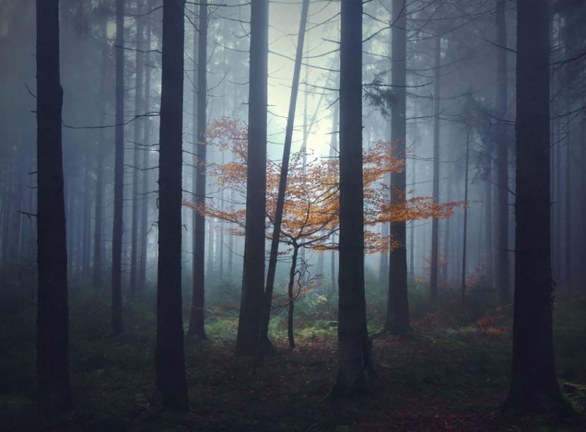 Kilian Schönberger, rocznik 1985, jest fotografem i geografem, pochodzi z Niemiec. Fotografuje – jak przyznaje na swojej stronie internetowej – mimo że nie rozpoznaje kolorów. Daltonizm (albo: zaburzenie rozpoznawania barw) przekuwa jednak w atut. Pracuje instynktownie. Kiedy wykonuje zdjęcie w lesie – ignoruje odcienie, których nie odróżnia. Koncentruje się na fakturze drzew, kształtach. „Lubię surowe piękno – wyznaje. – i melancholię, które je otacza”.