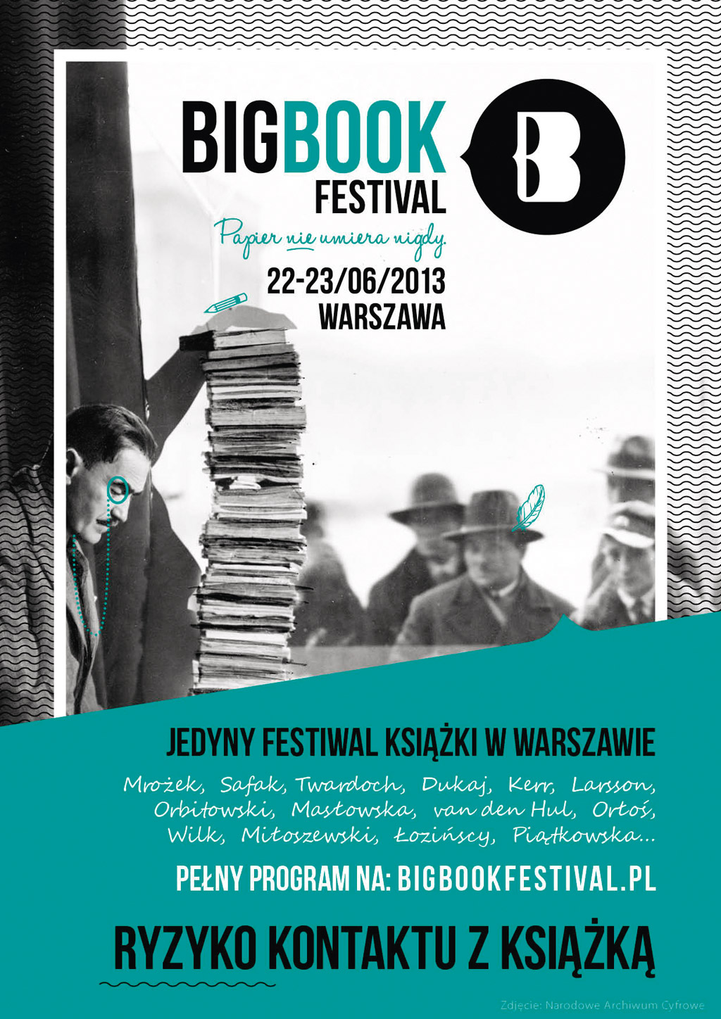 Big Book Festival, którego pomysłodawcą i organizatorem jest fundacja Kultura Nie Boli, łączy literaturę i sztukę, ludzi i nowe technologie. Odbywa się pod hasłem „Papier nie umiera nigdy”, które przywraca wiarę w trwałość książek, w przyszłość literatury w nowych formach, ale odnosi się też do artystycznych wytworów z papieru, których nie zabraknie na festiwalu.
