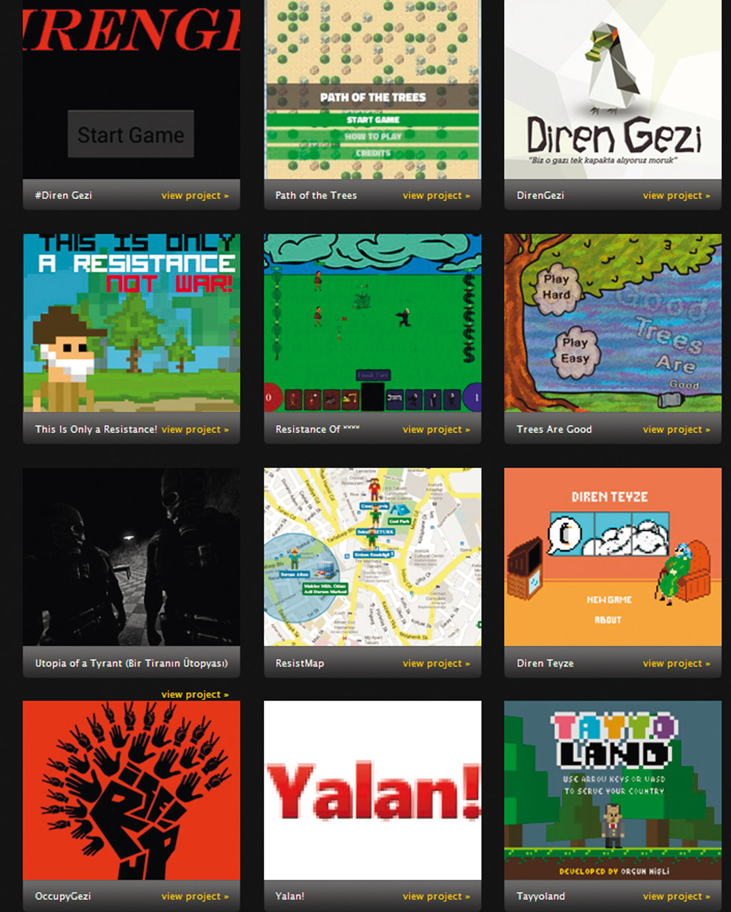 O czym traktują, sugerują już tytuły: „Utopia of Tyrant” „Resist Map”, „Occupy Gezi”, „This Is Only a Resistance! Not War!”, „Trees Are Good”, „Resistance of ****”, „Path of The Trees”. To ważne głosy z placu Taksim. Jak pisze anonimowy twórca: „»Utopia of Tyrant« jest artystycznym wyrażeniem mojego strachu i gniewu. Tak, boję się, bo mogę zostać aresztowany za stworzenie tej gry. Ale jak powiedział Eddard Stark, tylko czując strach, można wykazać się odwagą”.