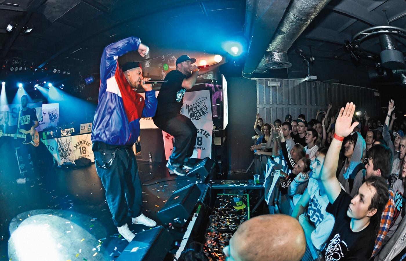 I takie były potoczne skojarzenia wokół całej właściwie hiphopowej subkultury, co notabene wykorzystał później w swoim filmie „Blokersi” Sylwester Latkowski: ławka jako osiedlowe centrum życia towarzyskiego, skręty z marihuaną, grafficiarskie tagi na ścianach domów i wagonach kolejki dojazdowej, silny terytorializm, bo to przecież ważne, czy jesteś z Ursynowa czy z Żoliborza. To samo było ważne w czasach walk chuliganów z bikiniarzami w latach 50. i potem w epoce gitowców. Obowiązywał patriotyzm lokalny. „Znamy się od dziecka/Nie wchodzi w rachubę akcja niemiecka” – rapowała Molesta w „Osiedlowych akcjach”. Na teledysku do „Wiedziałem, że tak będzie” widzimy zimową scenerię blokowiska z gromadką wygolonych na łyso młodzieńców w szerokich spodniach i bluzach z kapturami, no i słyszymy – rzecz jasna – rymy o brutalnej codzienności młodego człowieka ze społecznych dołów. Chłopaki z Molesty nie prostowali opinii, jakie krążyły na ich temat po Warszawie – że są niebezpieczni i nieobliczalni. Na ich pierwszej płycie – „Skandal” – pojawiło się groźne hasło „nienawidzę policji”. A polski show-biznes dość powszechnie się Molesty po prostu bał.